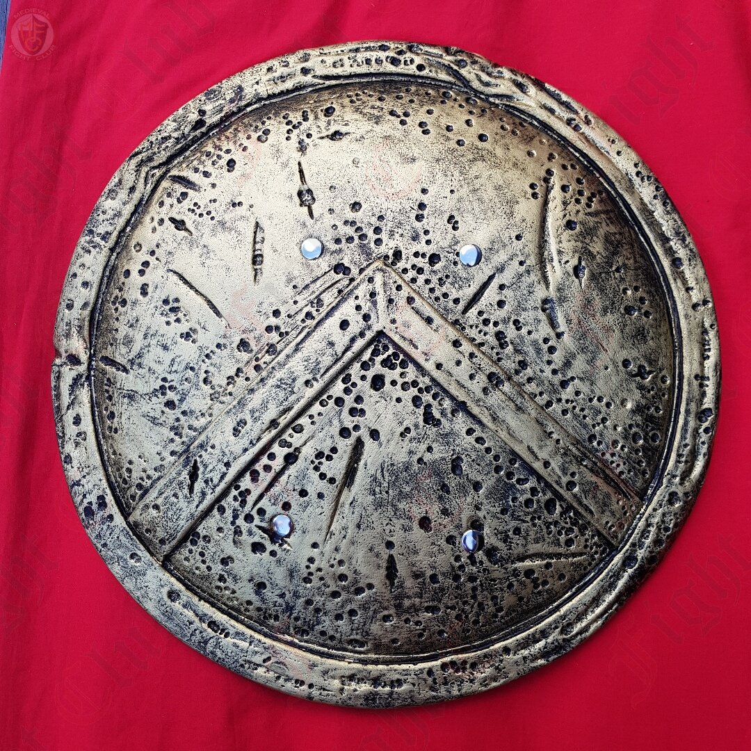 Our Spartan shield is designed to be used for COSPLAY or with foam rubber weapons. It has two strong elastic straps and can be worn on the arm.