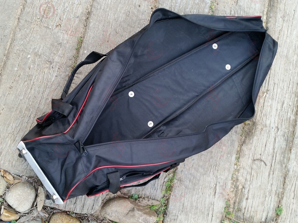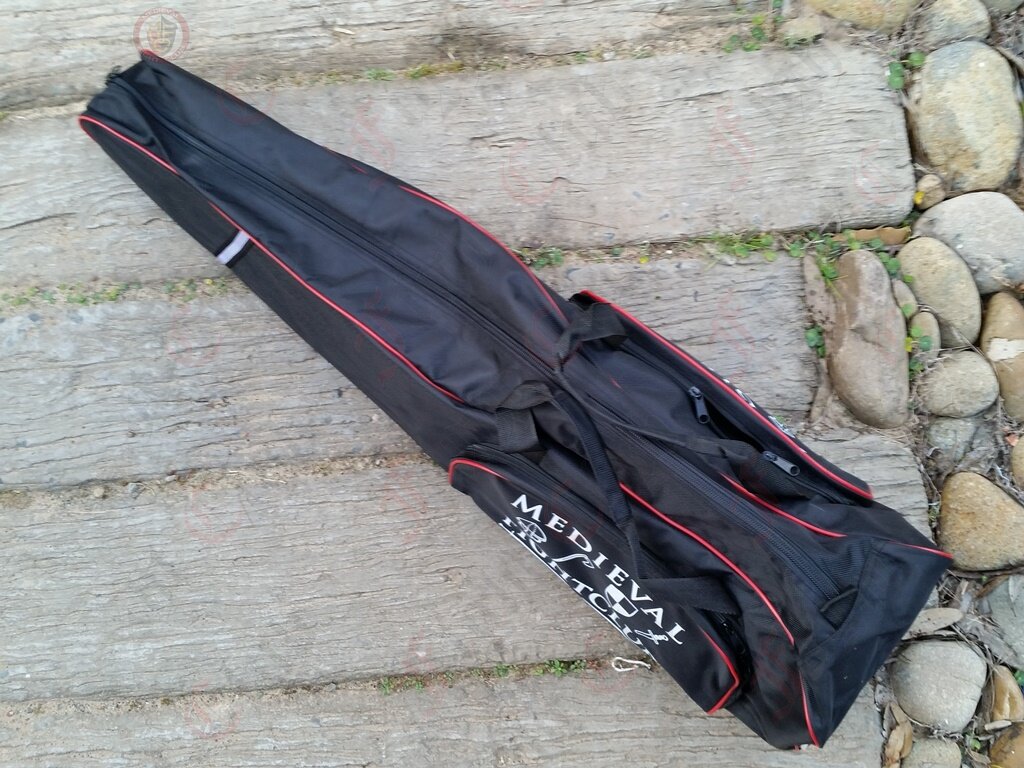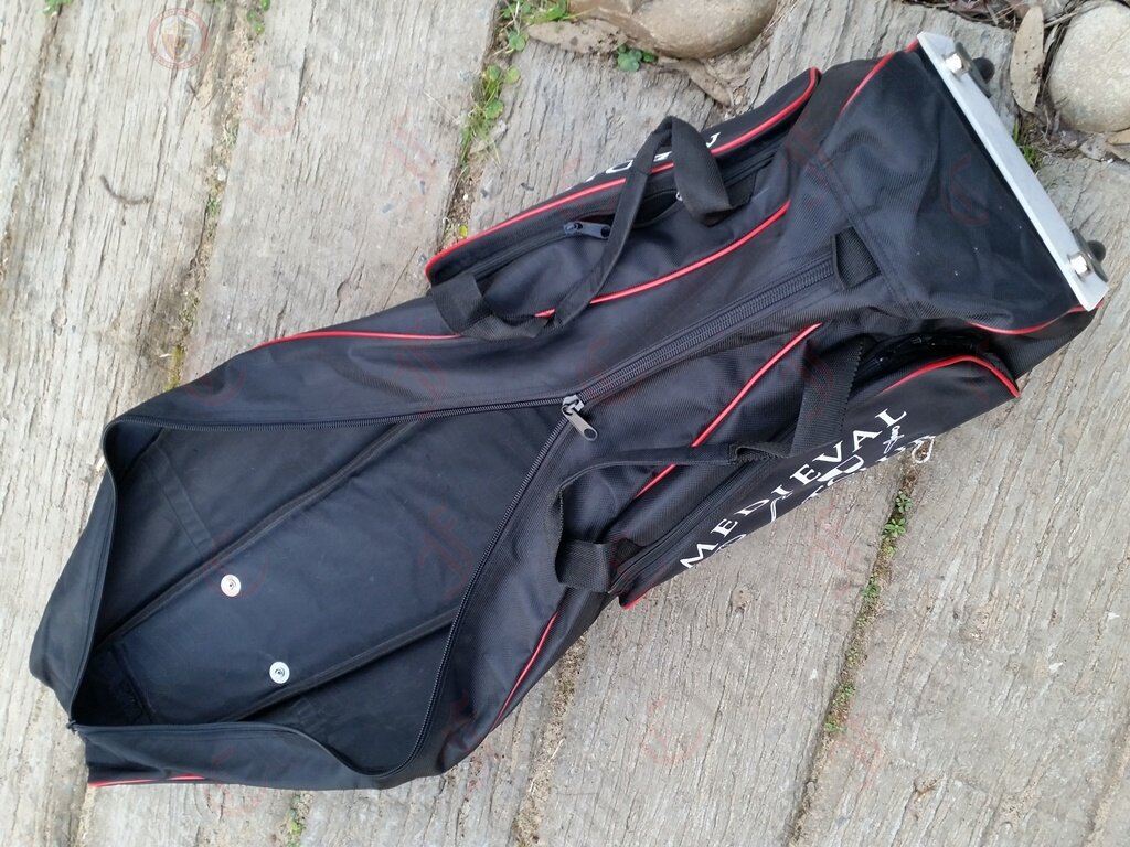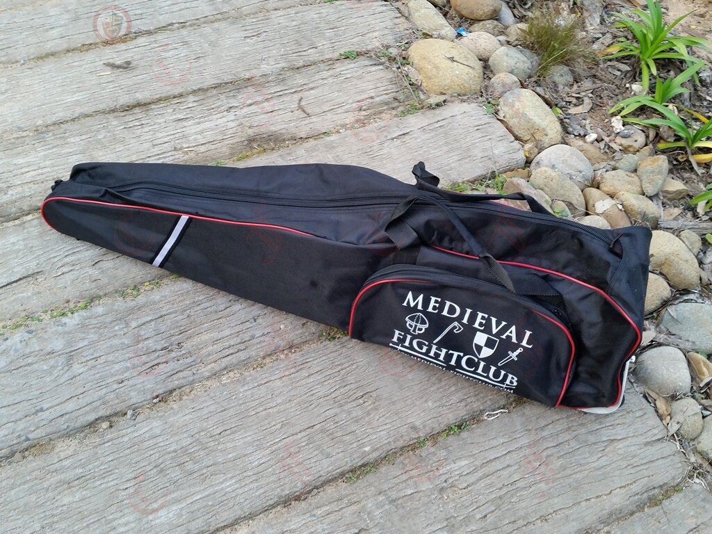 "A" shaped roller bag — This A framed bag is perfect for dragging around your fencing, re-enactment or martial arts equipment. It is a versatile design and it is made of durable woven nylon.