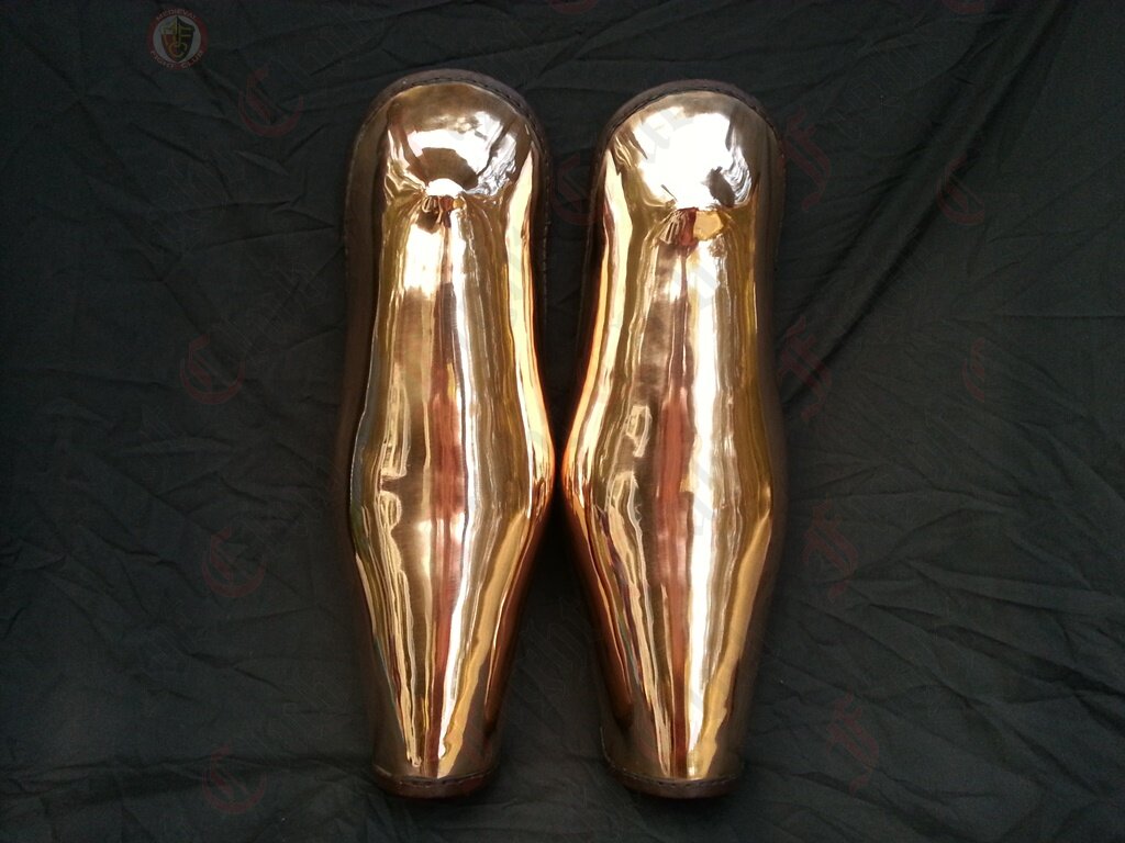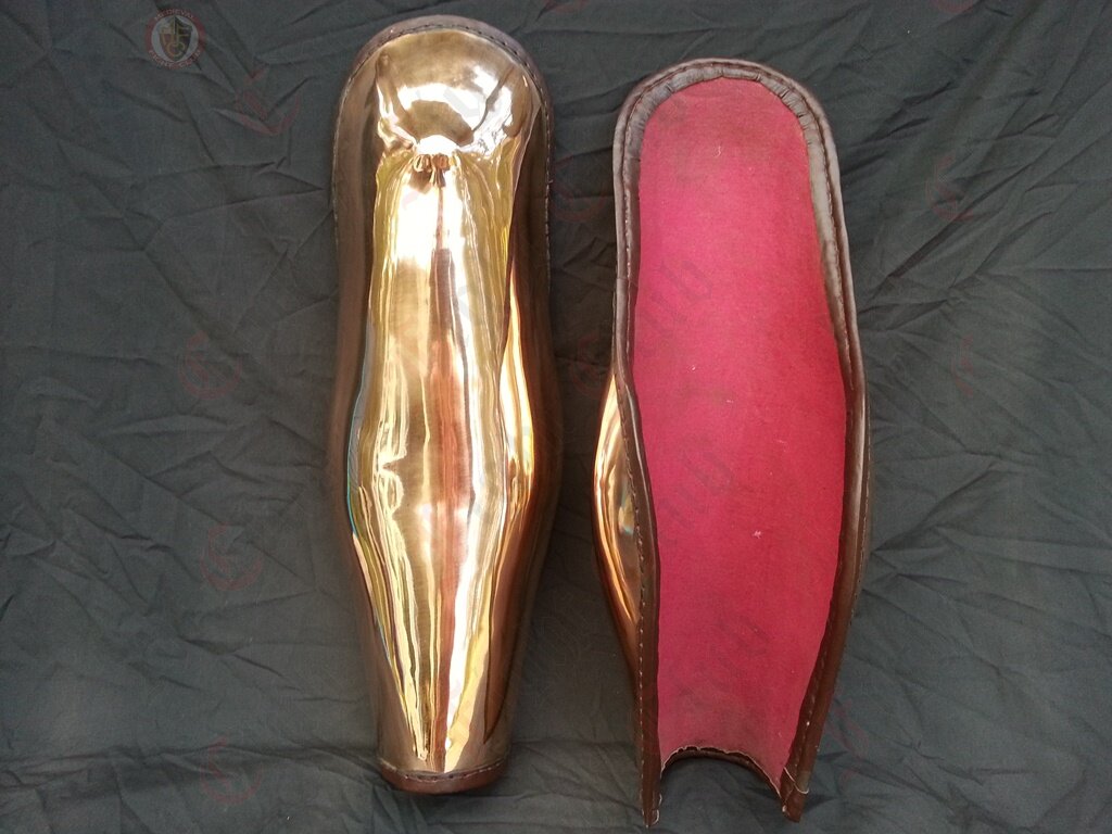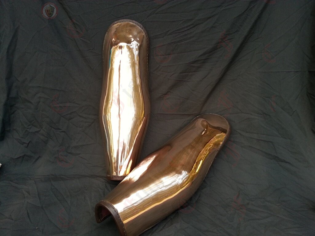 This pair of bronze Ancient Greek style leg greaves offer complete leg protection for combat re-enactors. Extra long and will cover the knees.