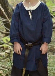 Long sleeves with slits on the sides and tie at neck of tunic.