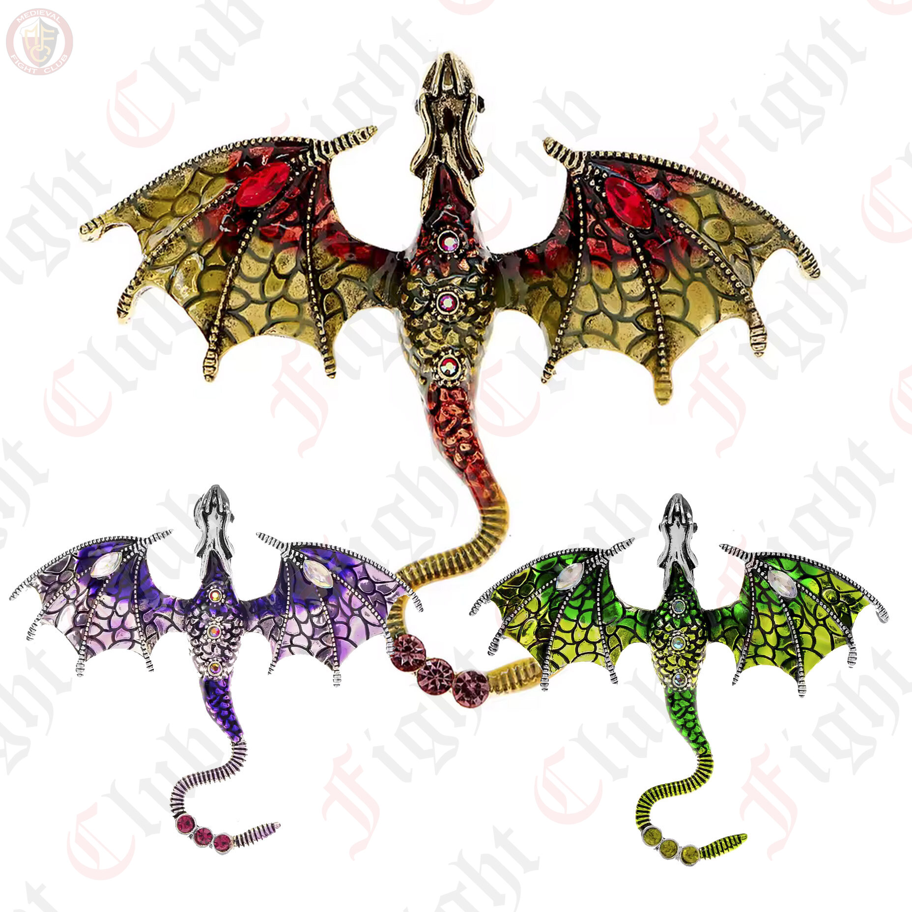 Multi-coloured and multi-styled dragon pins.