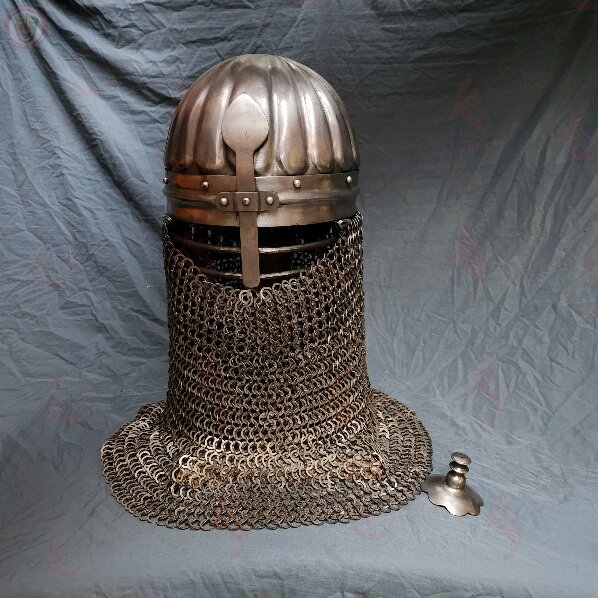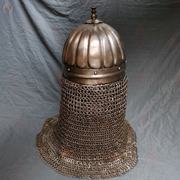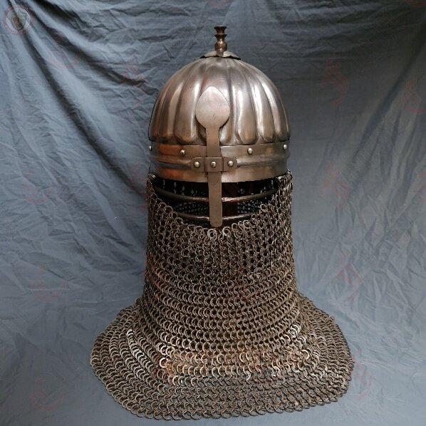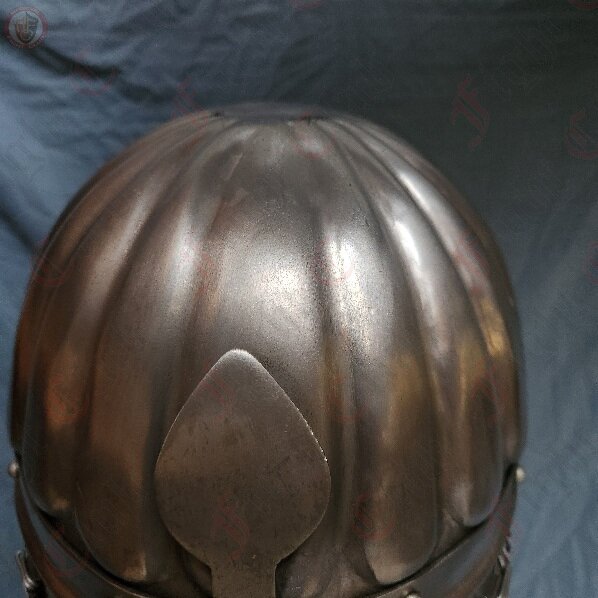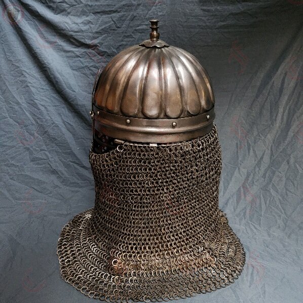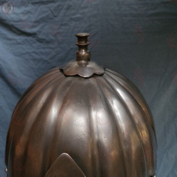 Eastern style helmet, not specific to any particular culture but is strongly influenced by Mongolian, as well as Persian, and Ottoman styles. Based on kulah khuds, also called top helms, used practically by Middle Eastern cultures as late as the 16thC.