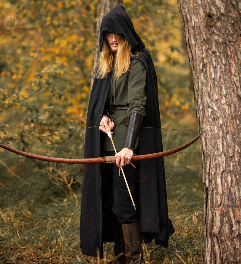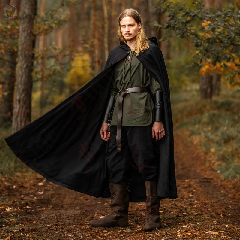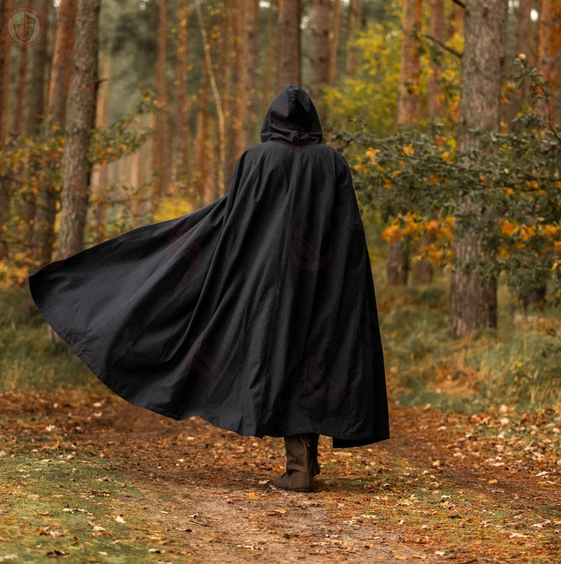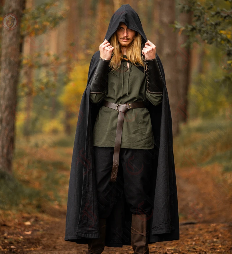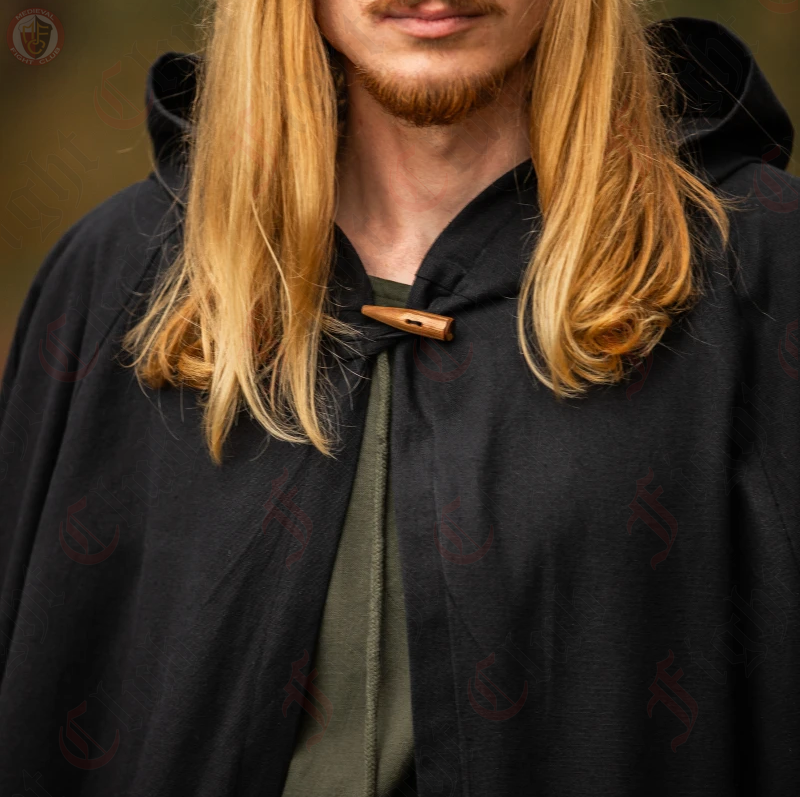 Step into a world of mystery and adventure with our Medieval Cloak. This exquisite cloak is your perfect companion for epic journeys, boasting a captivating hood length of approximately 34 cm and an elegant curve reaching up to 40 cm around the face. Designed for both men and women, its flowing silhouette offers freedom of movement while maintaining a seamless appearance. A decorative toggle button closure at the neck adds a touch of medieval charm, making it an irresistible addition to your collection.