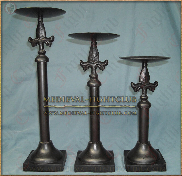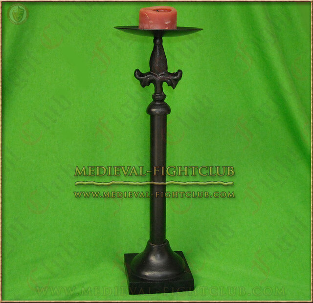 Black Metal Candle Stick- with Fleur de Lys 34.5cm
