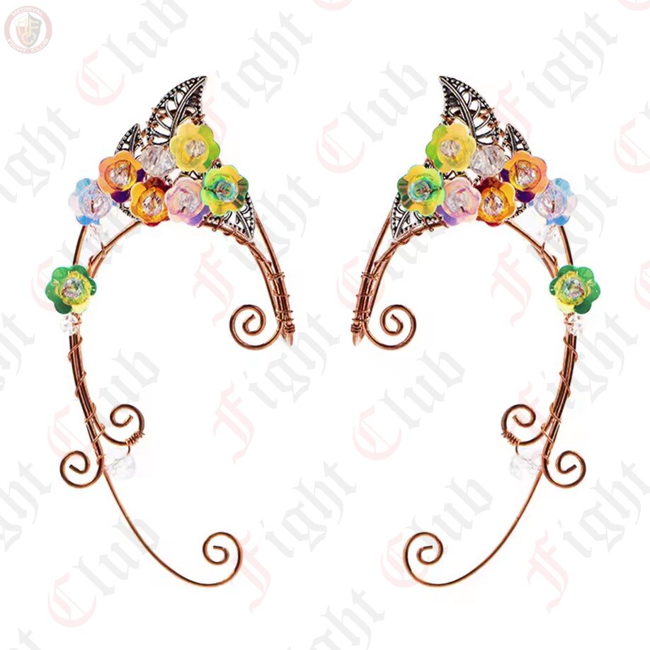 The jewellery of Forest Elves is always elegant and natural; decorations that harmonise with their woodland realms and ethereal nature. This ear cuff is no exception, its bronze structure twisting like stalks, from which its decorations of flowers and leaves as if they'd been grown there.