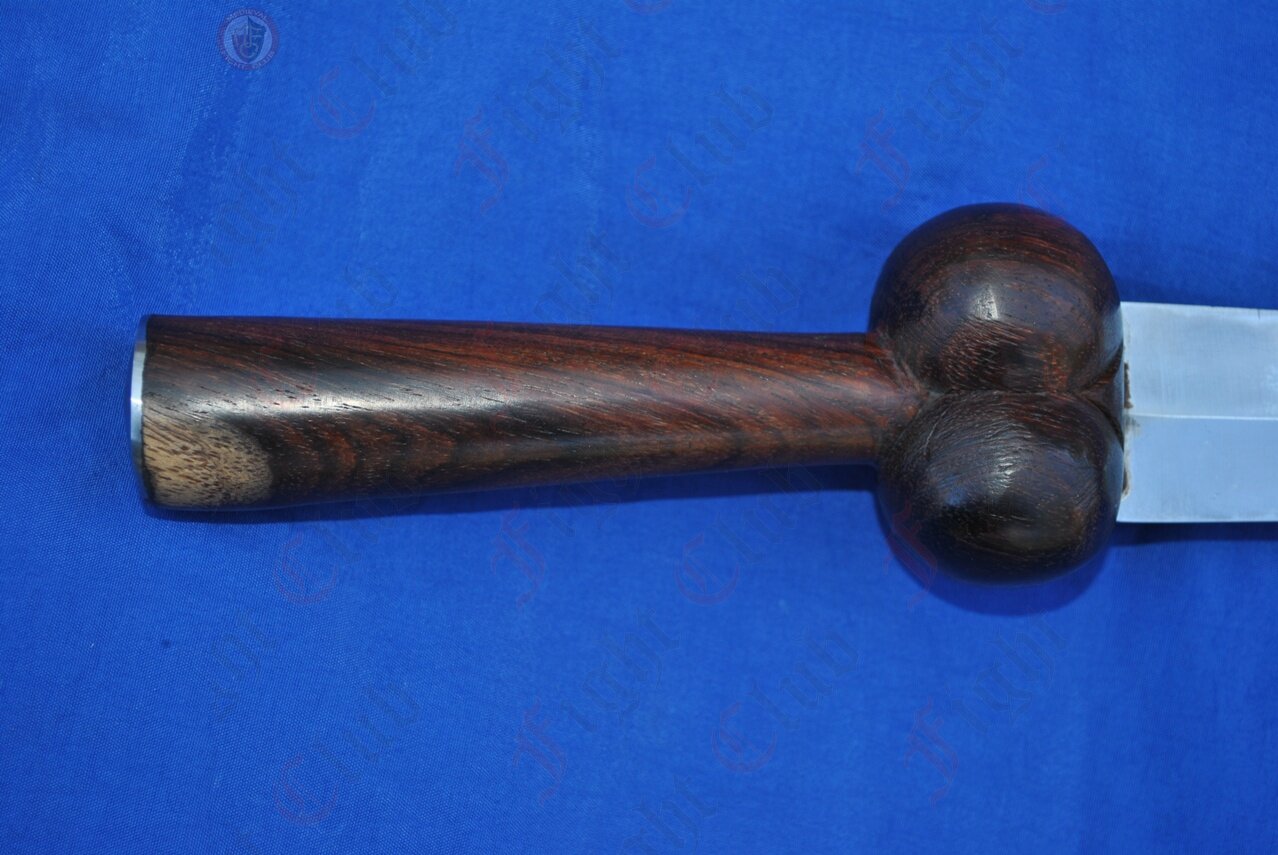 The bollock dagger or ballock knife is a type of dagger with a distinctively shaped shaft, with two oval swellings at the guard resembling male genitalia (or bollocks). The guard is often in one piece with the wooden grip, and reinforced on top with a shaped metal washer.