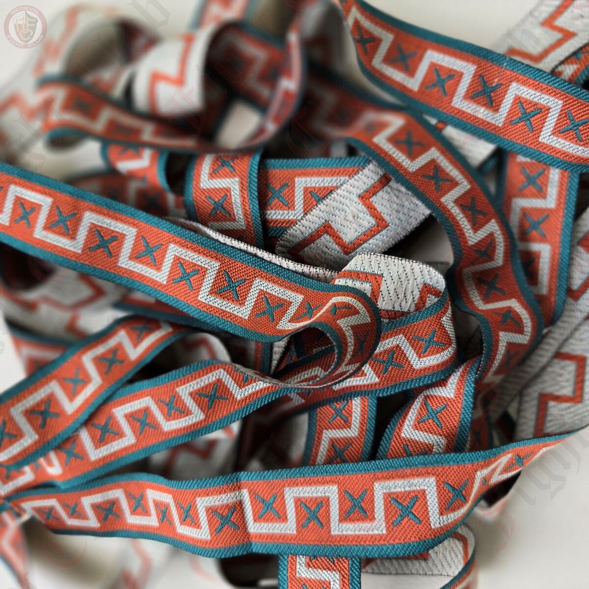 Woven braid with meandering pattern like on the sculpture located in Athens museum. A decorative border constructed from a continuous line, shaped into a repeated motif.