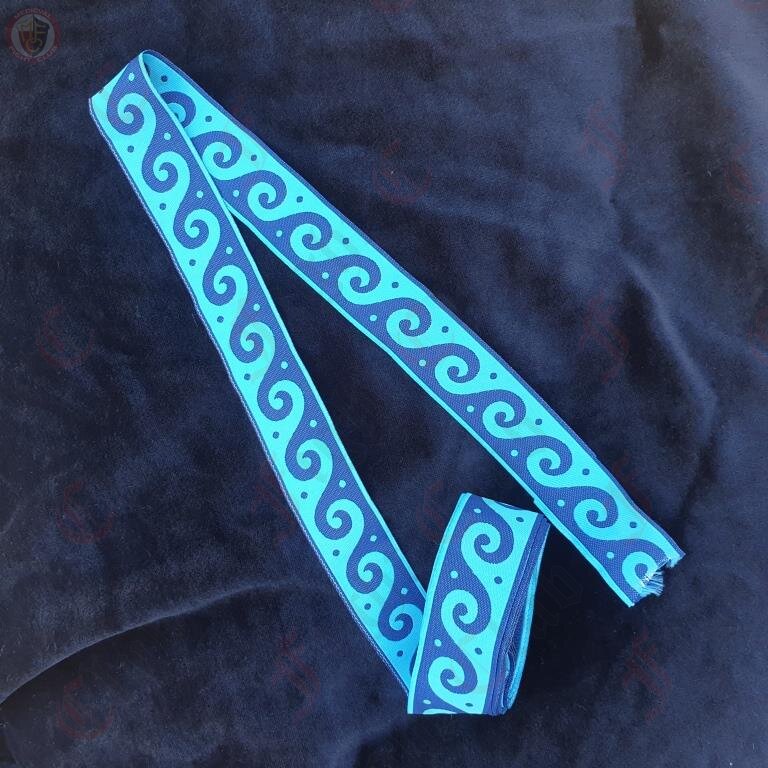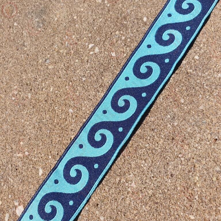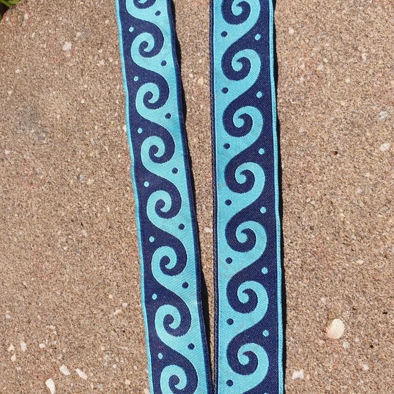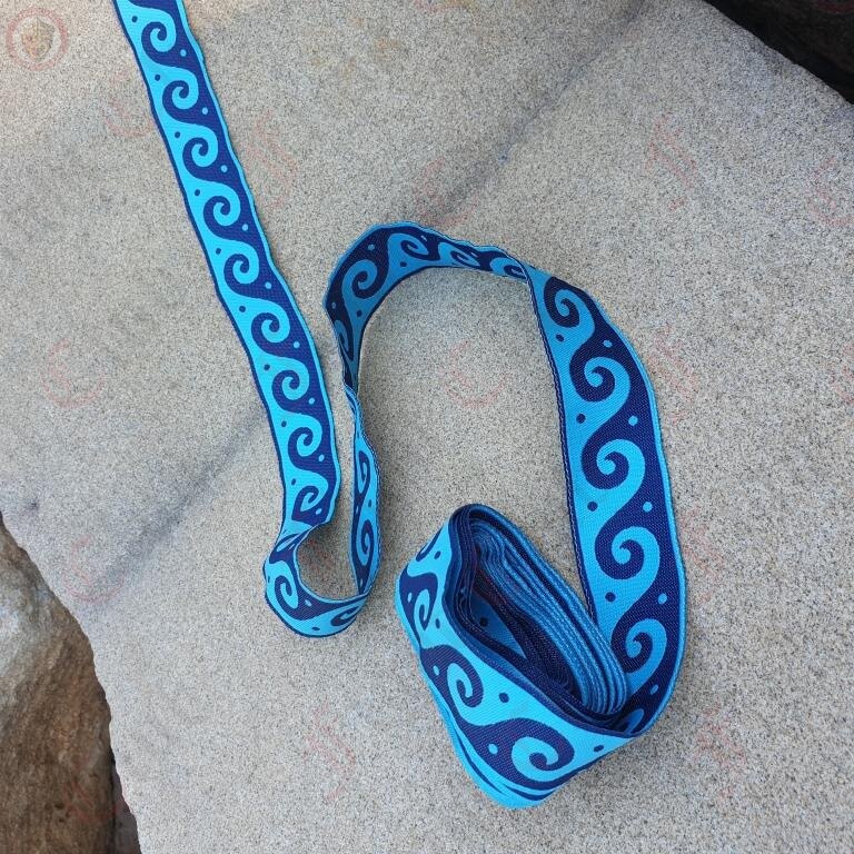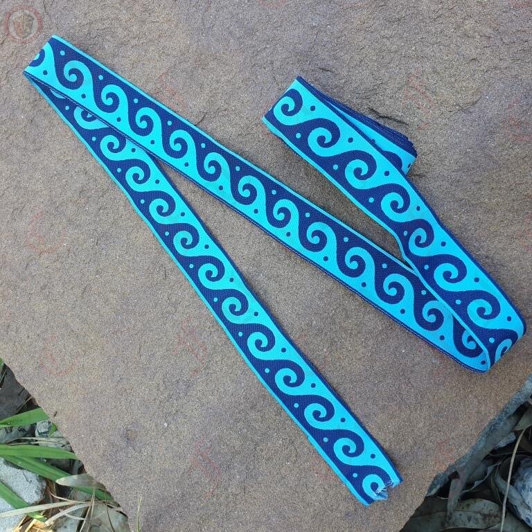 Woven braid with ocean-like patterns of waves. A decorative border constructed from a continuous line, shaped into a repeated motif.