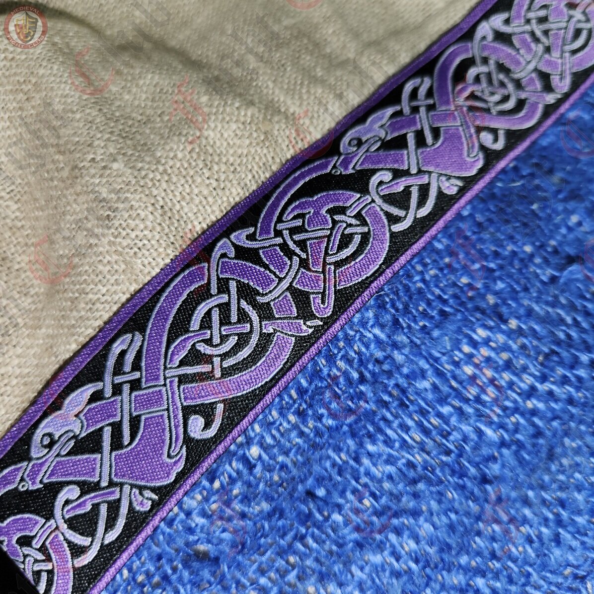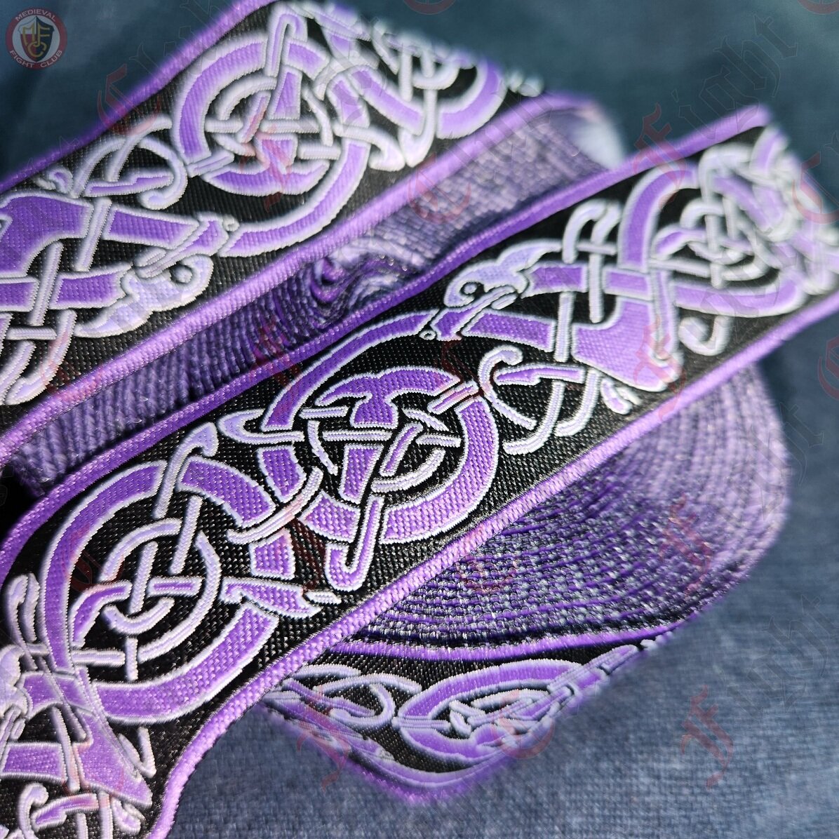 This woven braid features a striking Norse dog motif in an endless pattern, symbolising strength and continuity. Designed in rich shades of purple and black, it’s ideal for Viking tunics, cloaks, and costume trim. Developed exclusively by Fight Club, this braid is unique to our collection—you won’t find it anywhere else.