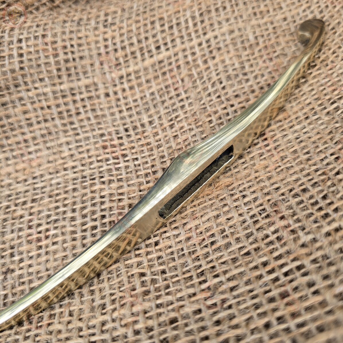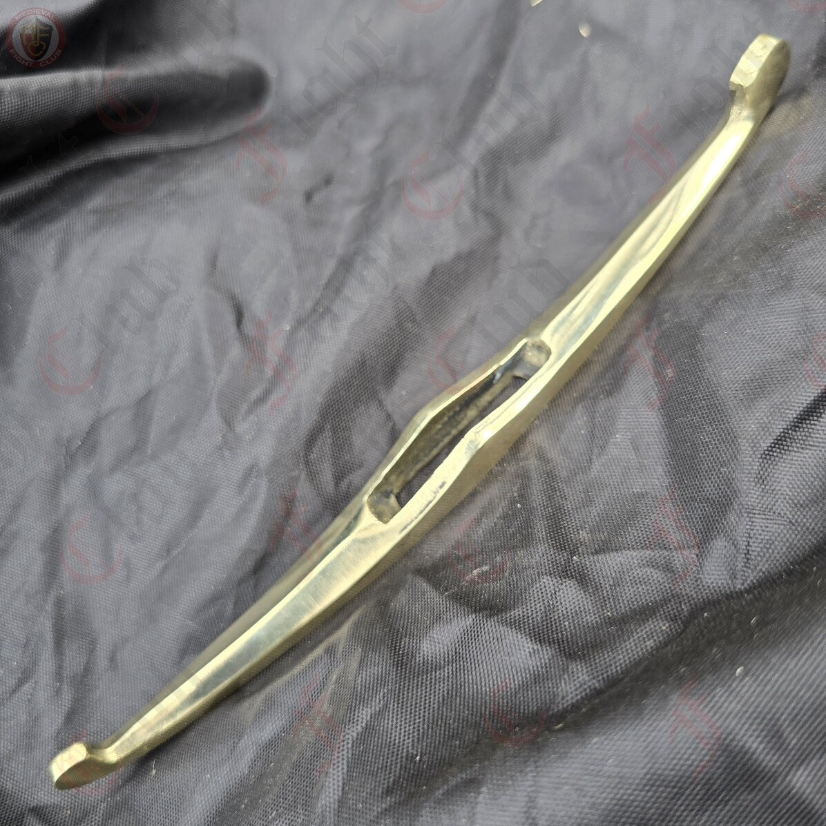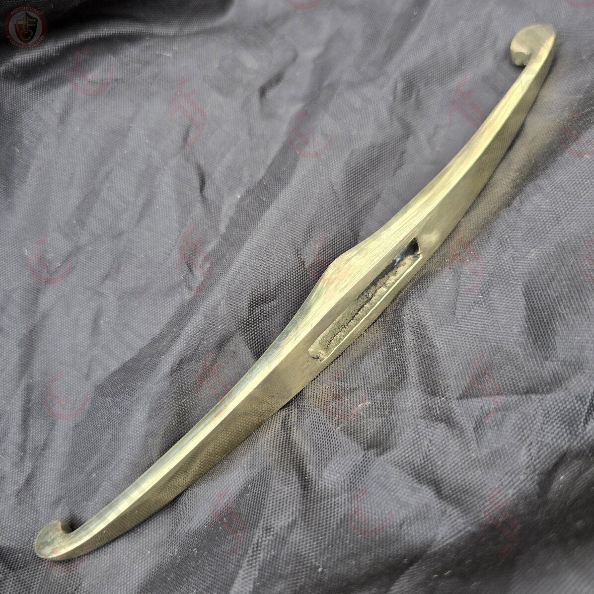 Brass curved and lobed crossguard - Each quillion ends in a circular lobe. This type of curved guard was the most popular during the 14th century in Europe.