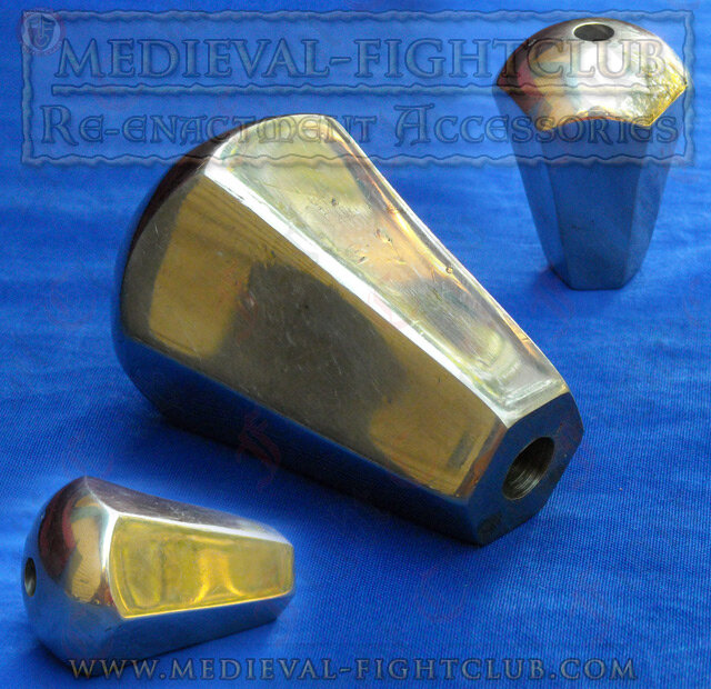 Scent stopper pommels like this are so named after their resemblance to the ornate caps of glass perfume bottles, or so thought Oakeshott when he classified them. Scent stopper pommels were common across Western Europe from the 14thC to 16thC, with particular usage on the ends of longswords and bastard swords. The longer pommel could allow for that extra little bit of room to grip and gain leverage when fighting.