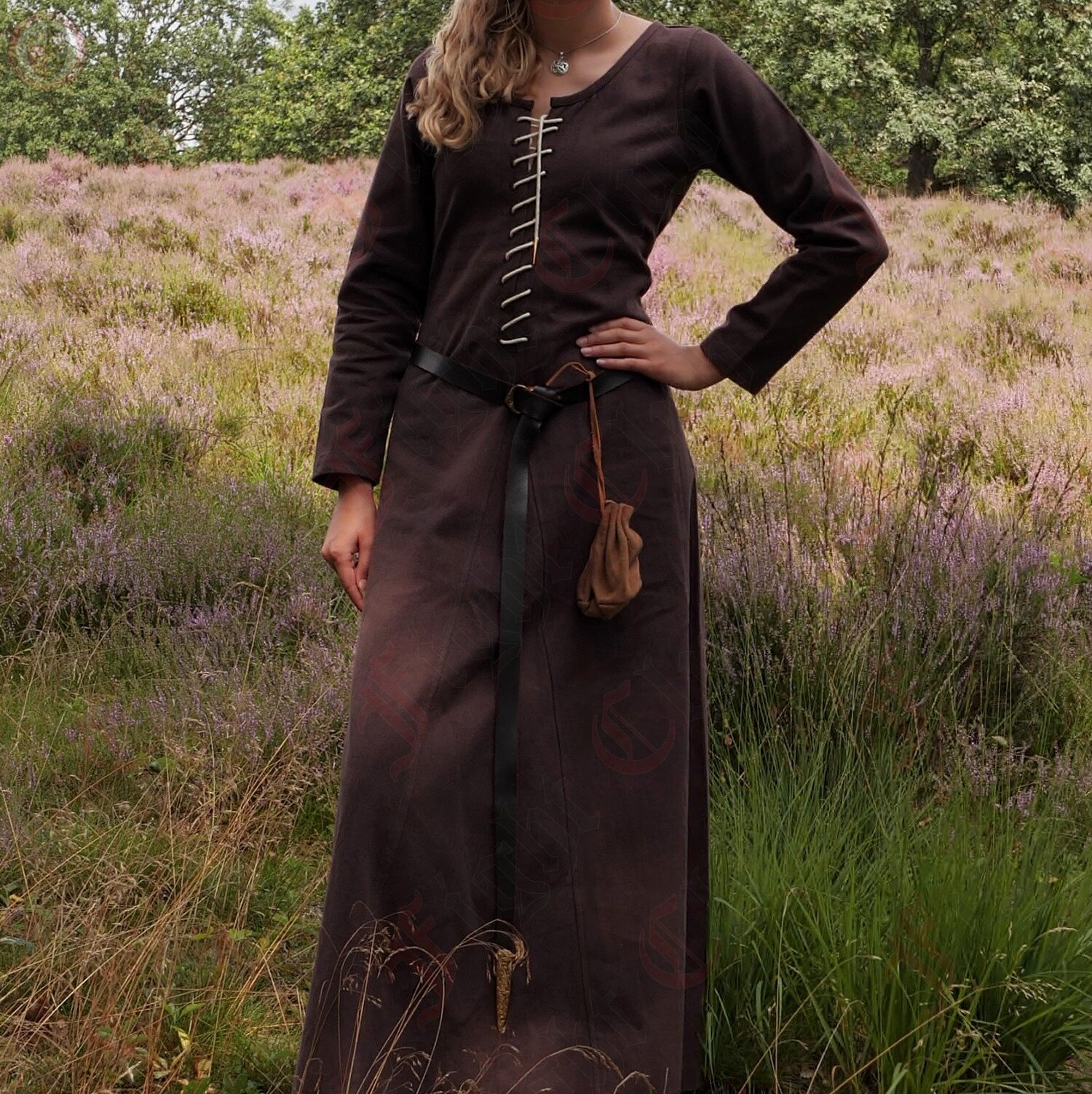 Based on medieval artwork and period fashion, this style reflects the transition from loose early garments to the more form-fitting silhouettes of later centuries. A beautiful and authentic choice for reenactment, LARP, fairs, and historical costuming.