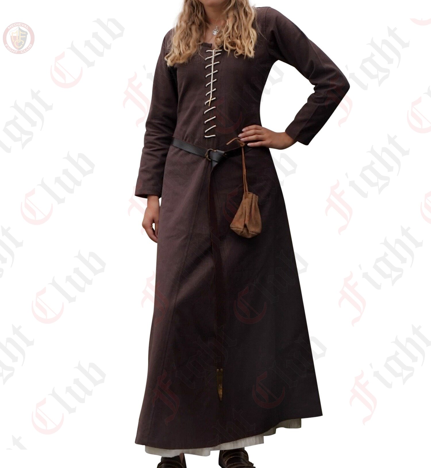 Elevate your medieval ensemble with this elegant cotton canvas cotehardie, inspired by 13th–15th century historical garments. Tailored for a flattering fit, it features triangular skirt inserts that create a flowing, full hemline. The front is laced with a slim cotton cord tipped with aglets, allowing you to adjust the dress perfectly to your shape.