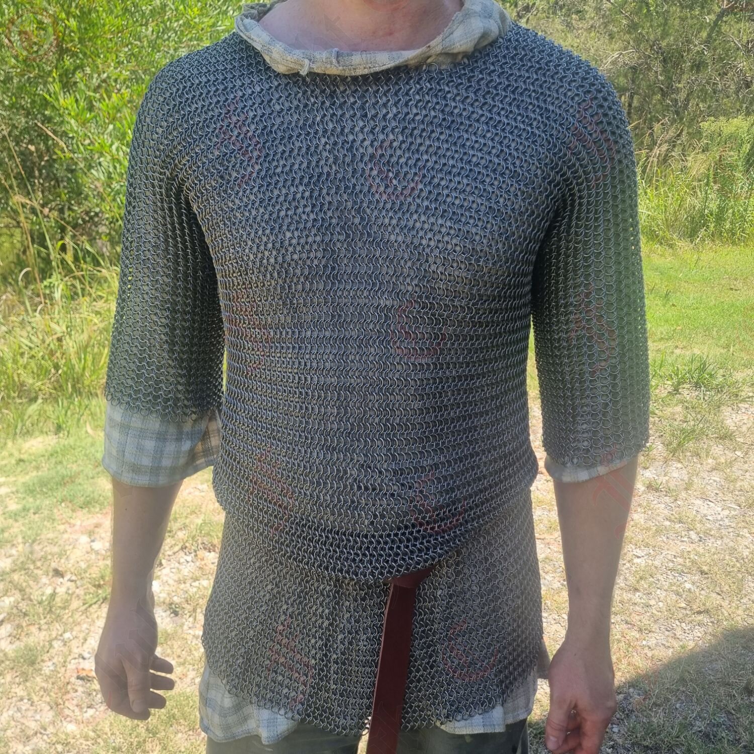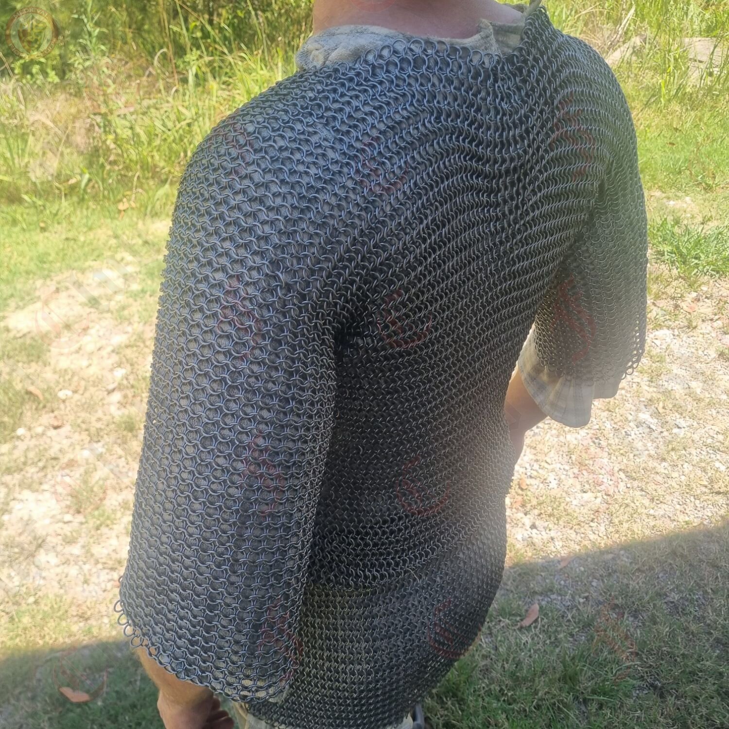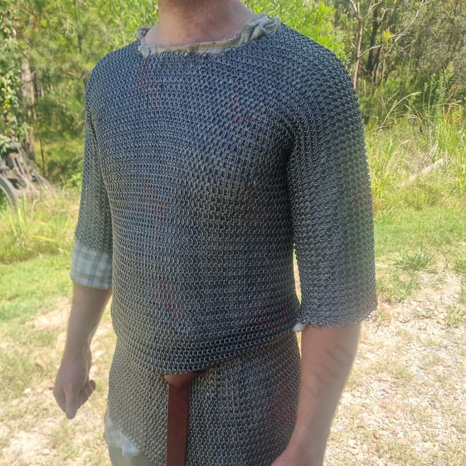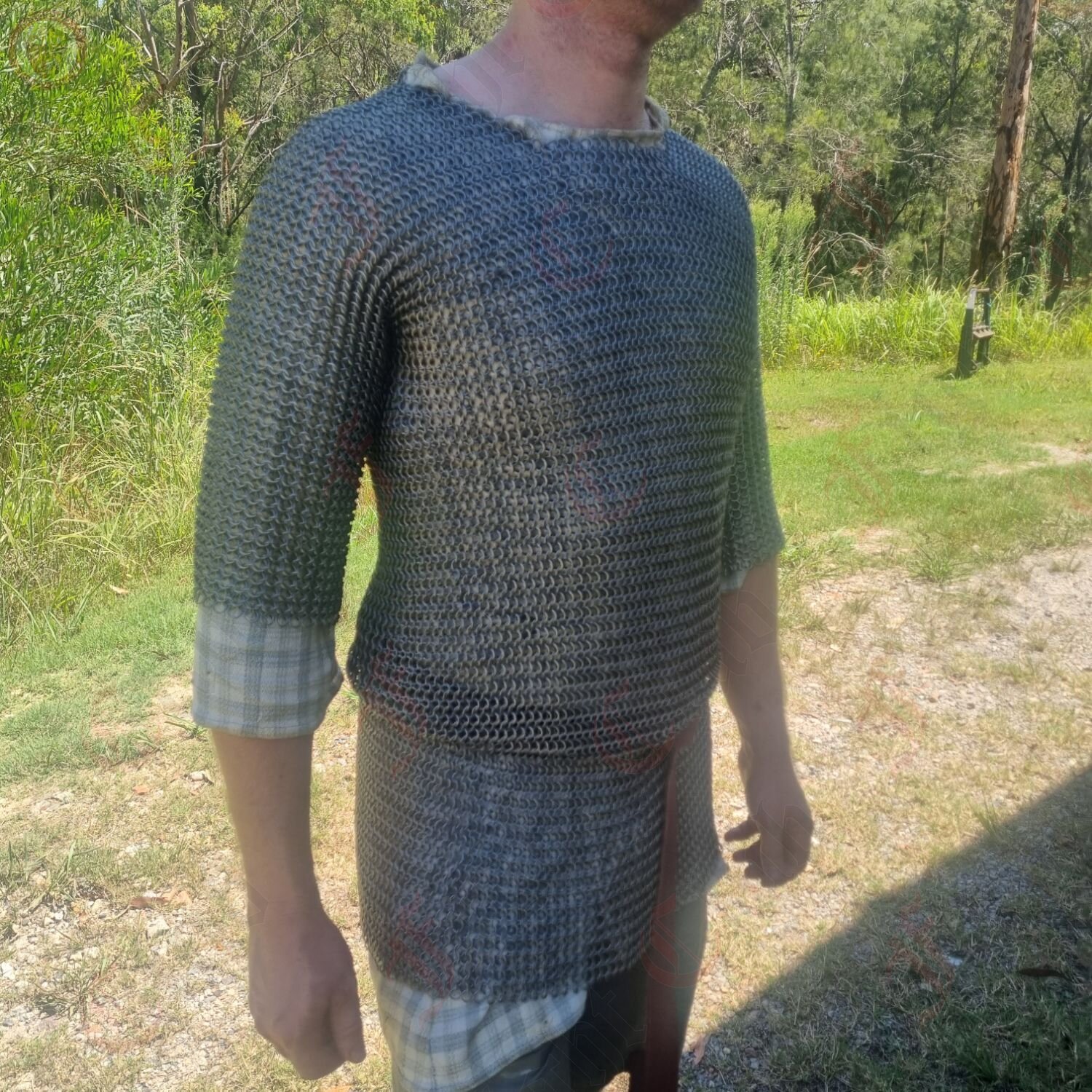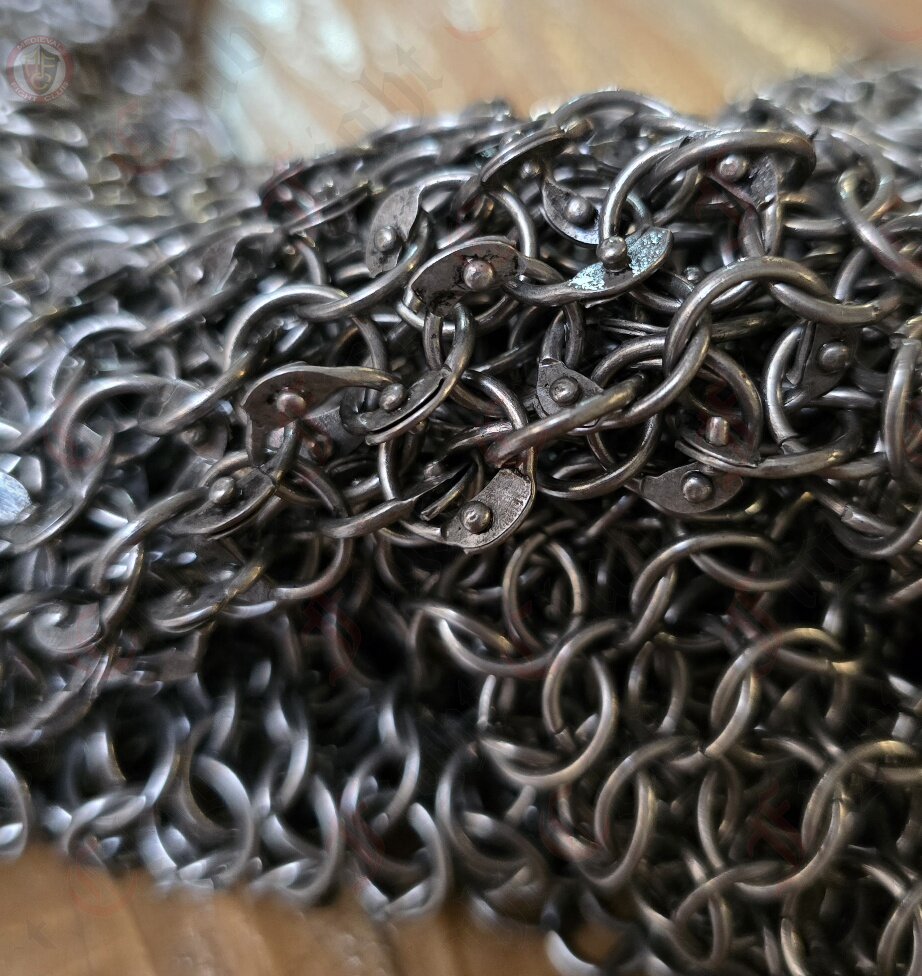 This mail tunic is forged from mild steel rings woven in the classic 4-in-1 pattern—balancing strength, flexibility, and true battlefield heritage. The armpits are reinforced with riveted mail, giving extra protection at key stress points where armour takes the hardest wear.