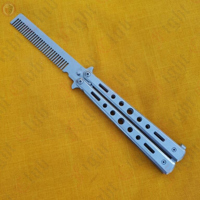 With the same flick mechanism associated with the infamous butterfly knife, this eye-catching comb swaps lethality for utility.