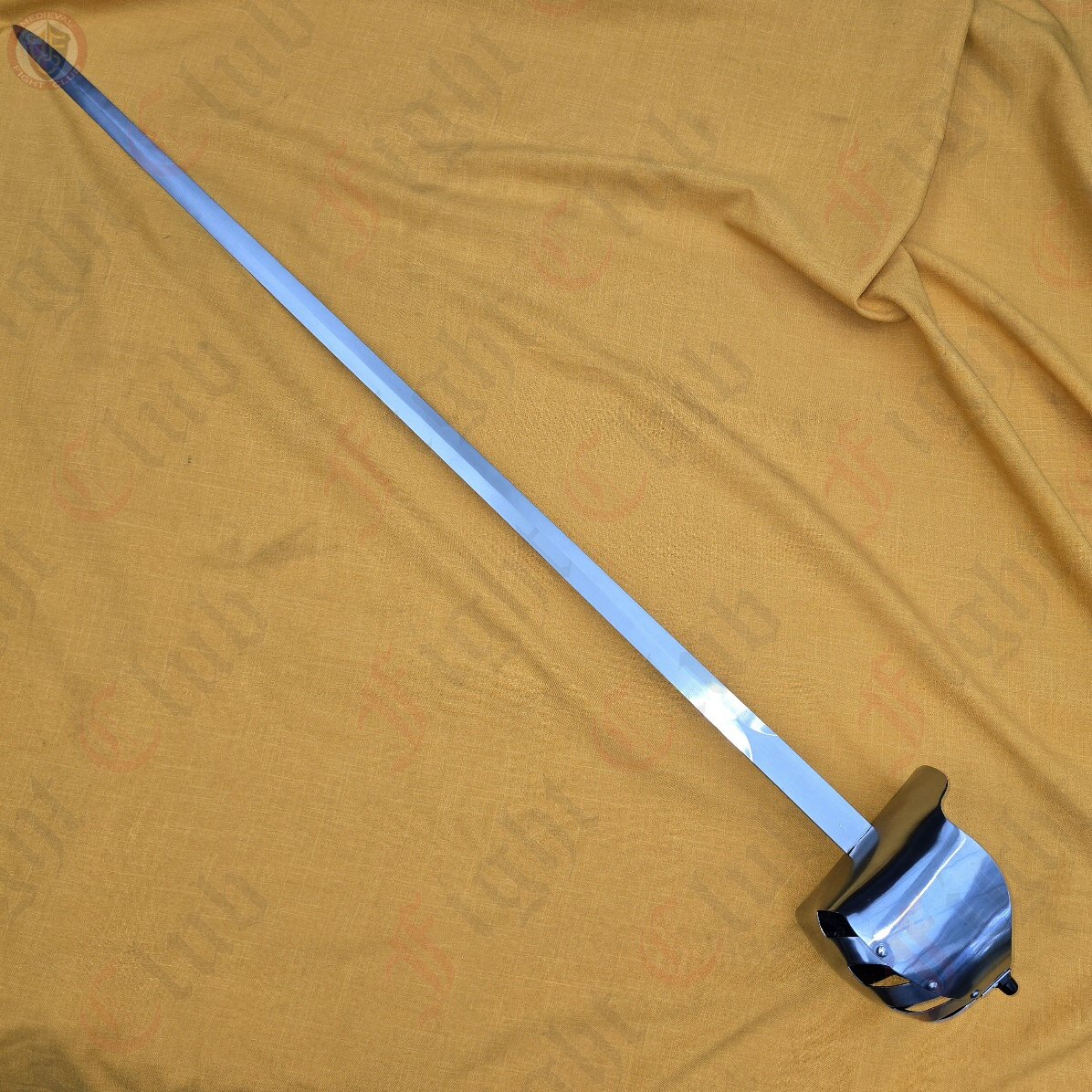 A stage sword constructed from a high carbon steel that is rust resistant. Ideal for theatre productions searching for a sword that shines and flashes, rings and clashes; something that will give your actors an authentic sense of utilising and fighting with a theatre sword. This sword is blunted, features a basket hilt to keep your hand protected whilst using the sword, and a rubber grip for comfort.