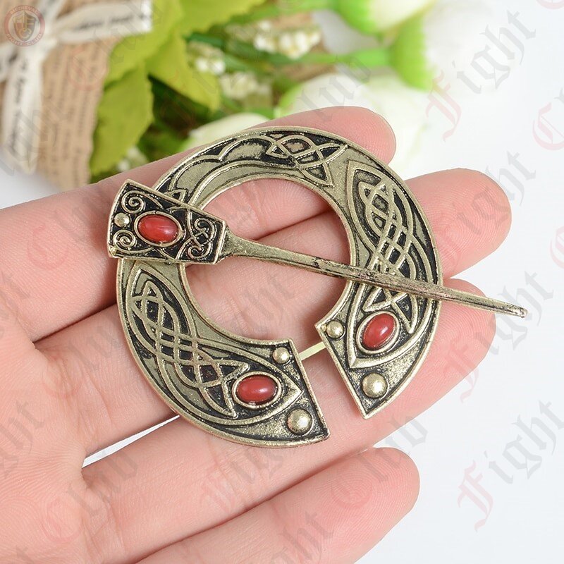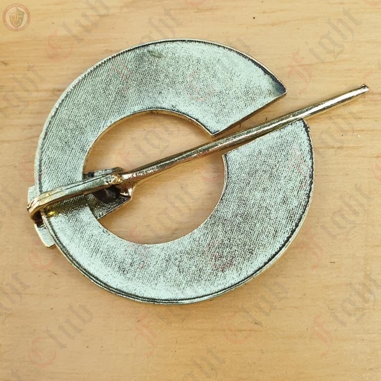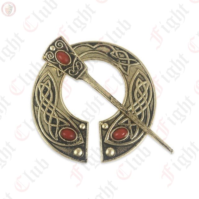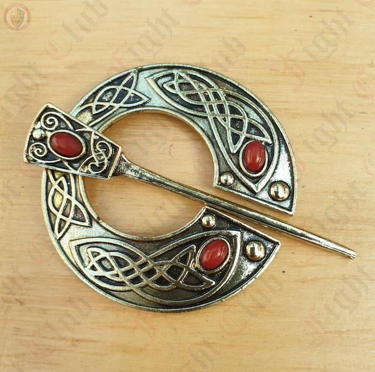 Celtic cloak pin made in the penannular style with immitation stones and celtic knotwork.