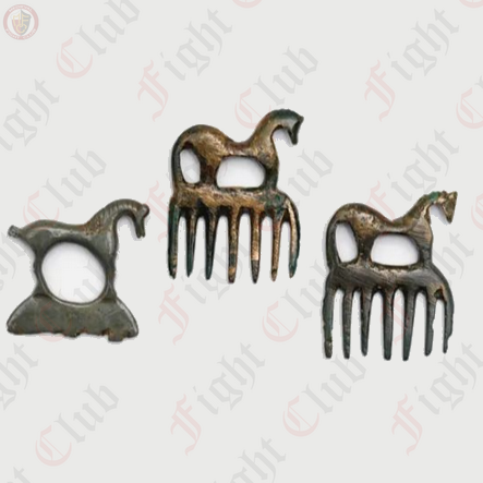 The original horse comb pendant was found in a Celtic cremation grave in the Praunheim district of Frankfurt am Main, which dates back to around 100 BC and thus belongs to the La Tène period TD1. Celtic combs in the shape of stylised horses are known from various sites of the La Tène period and were probably used not for hair care but for beard care or were personal amulets.