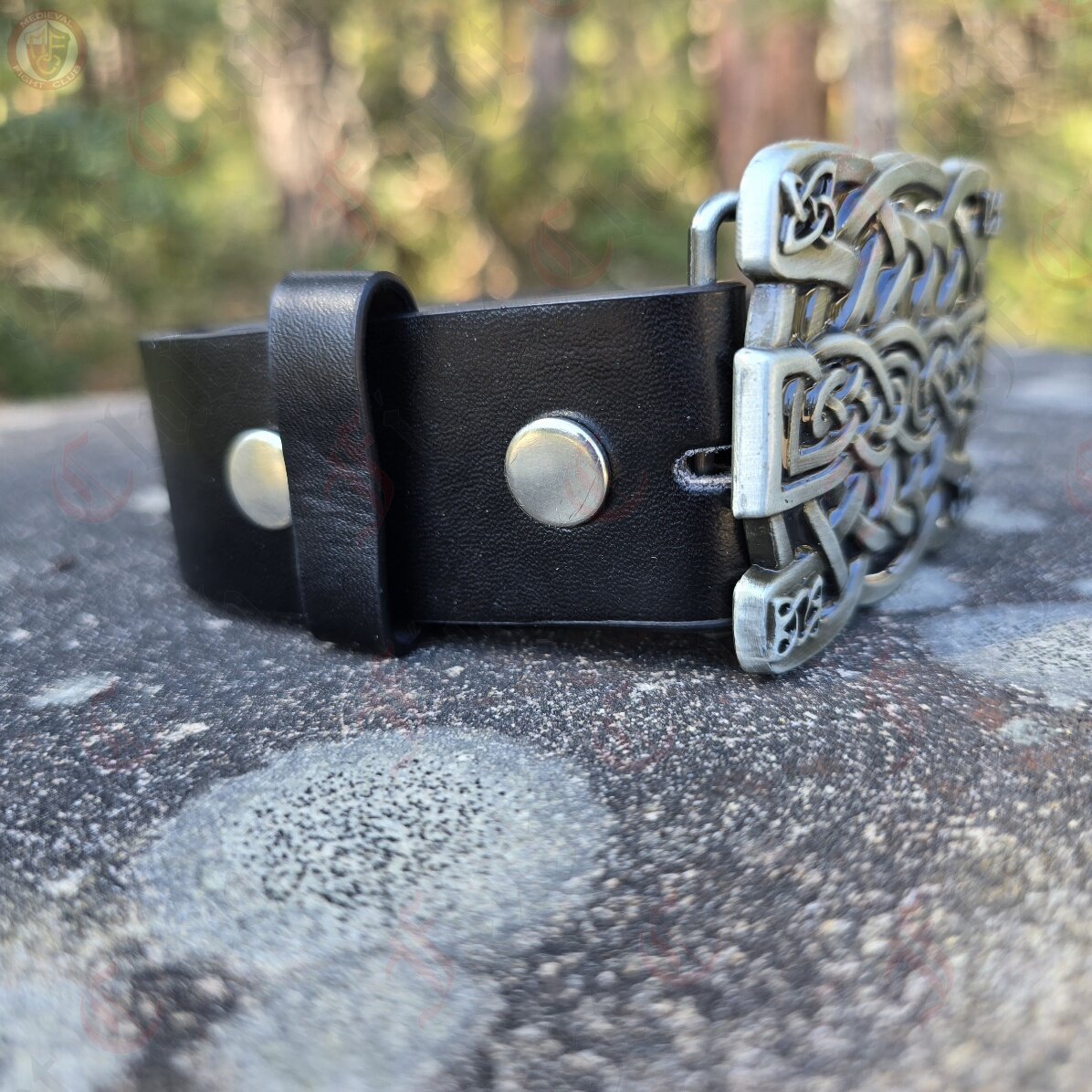 A striking leather belt with an intricate celtic knotwork buckle. Perfect for LARP, reenactment, or historical costume, the vibrant blue leather pairs beautifully with tunics, surcoats, or armour. The metal chape protects the belt’s end and adds a refined, period-accurate flourish. Durable, practical, and visually distinct, this belt is a standout addition to any historical or fantasy kit.