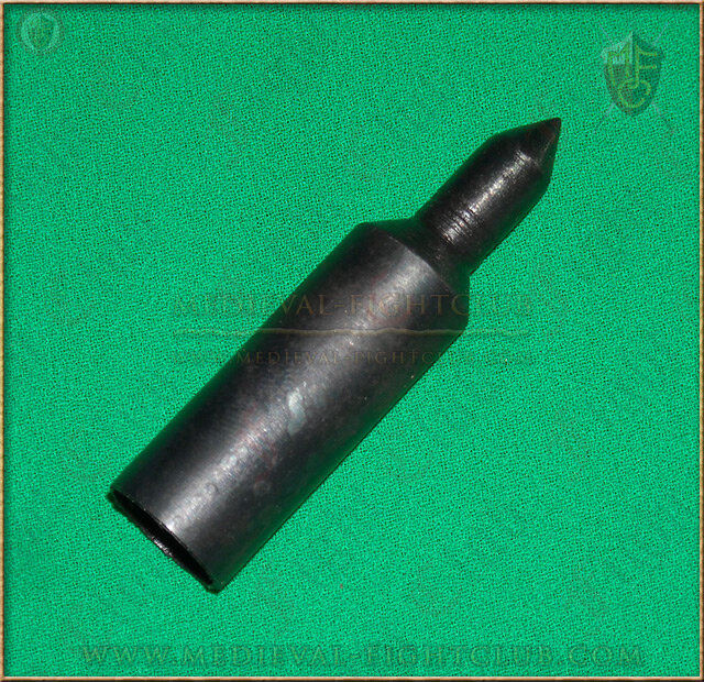 A forge black crossbow bolt head made with an extra wide collar for good heavy bolts.