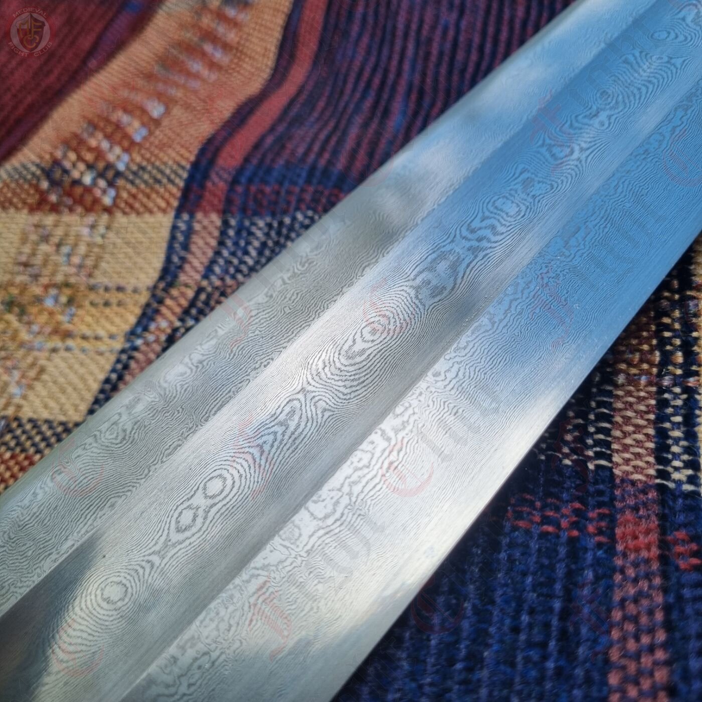 The Damascus patterning on the blade adds a mesmerising beauty to an already excellently crafted weapon. The blade also features an edge and distal taper, forming the weapon into a blade profile of either an arming sword or a small sword. The balance and weight distribution simply feels right in your hands, there's no other way to explain it. Experience it for yourself and you'll understand what we mean.