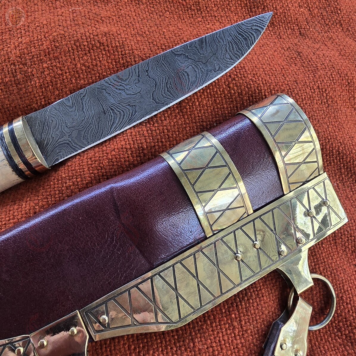Damascus Steel Seax - Hatched Sheath