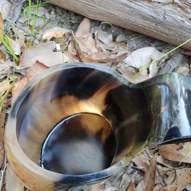 Very occasionally these tankards can develop a slight leak where the horn base meets the sides. This can be easily rectified with beeswax in the bottom of the tankard or silicone/clear varnish applied to the outside edge.