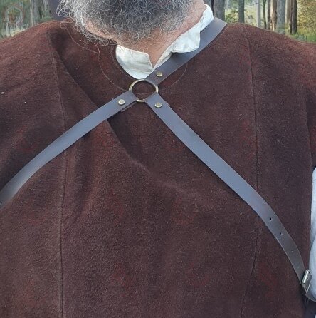 A buckled double back frog with shoulder straps, suitable for LARP or as basic costume.
