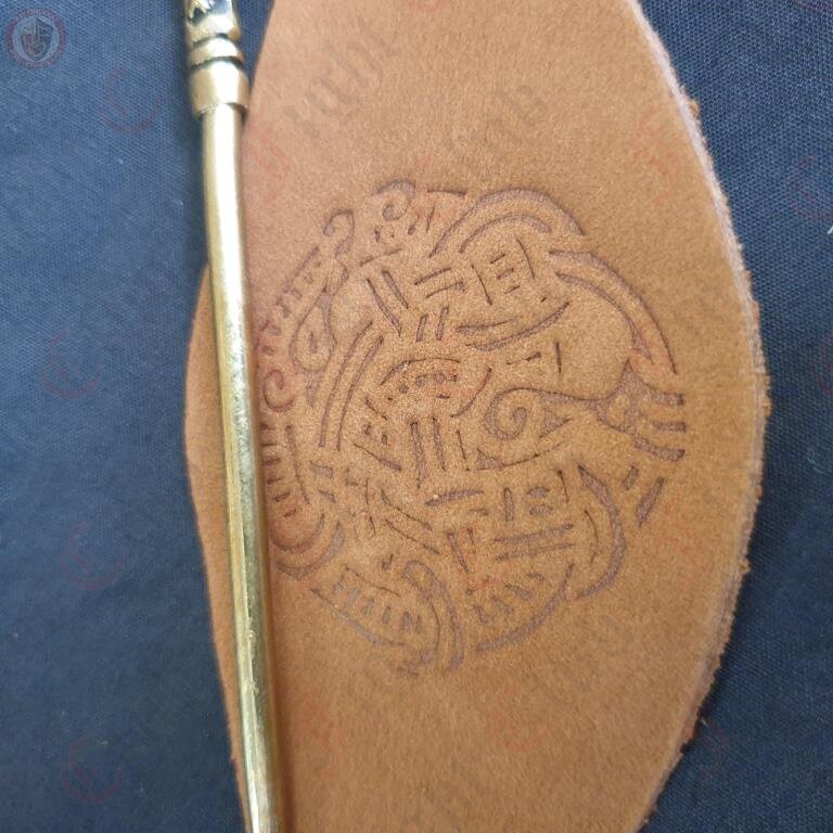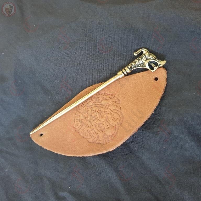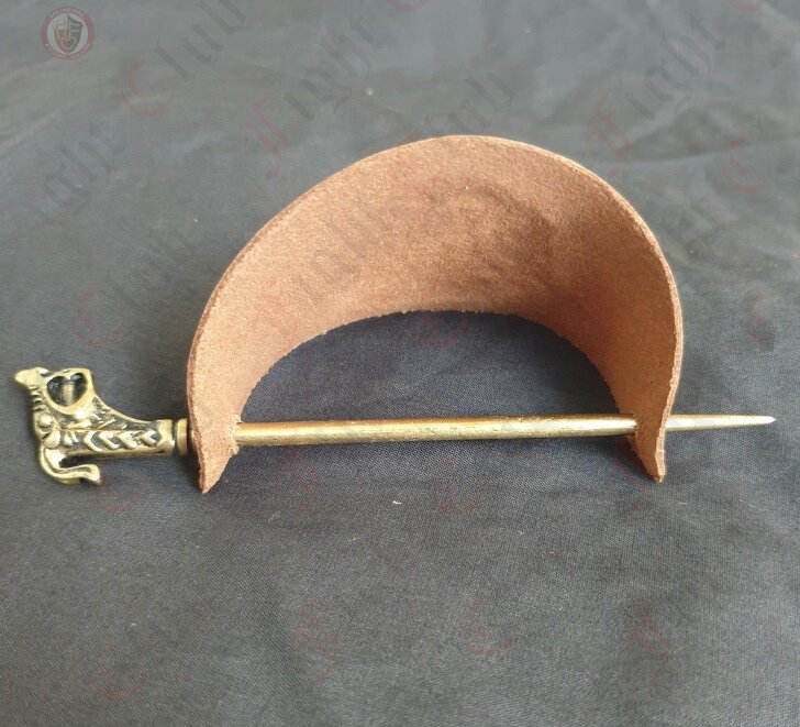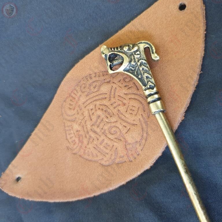 10th Century Dragon Head Hairpin with leather barrette Based on find from Hedeby (Haithabu) Denmark.