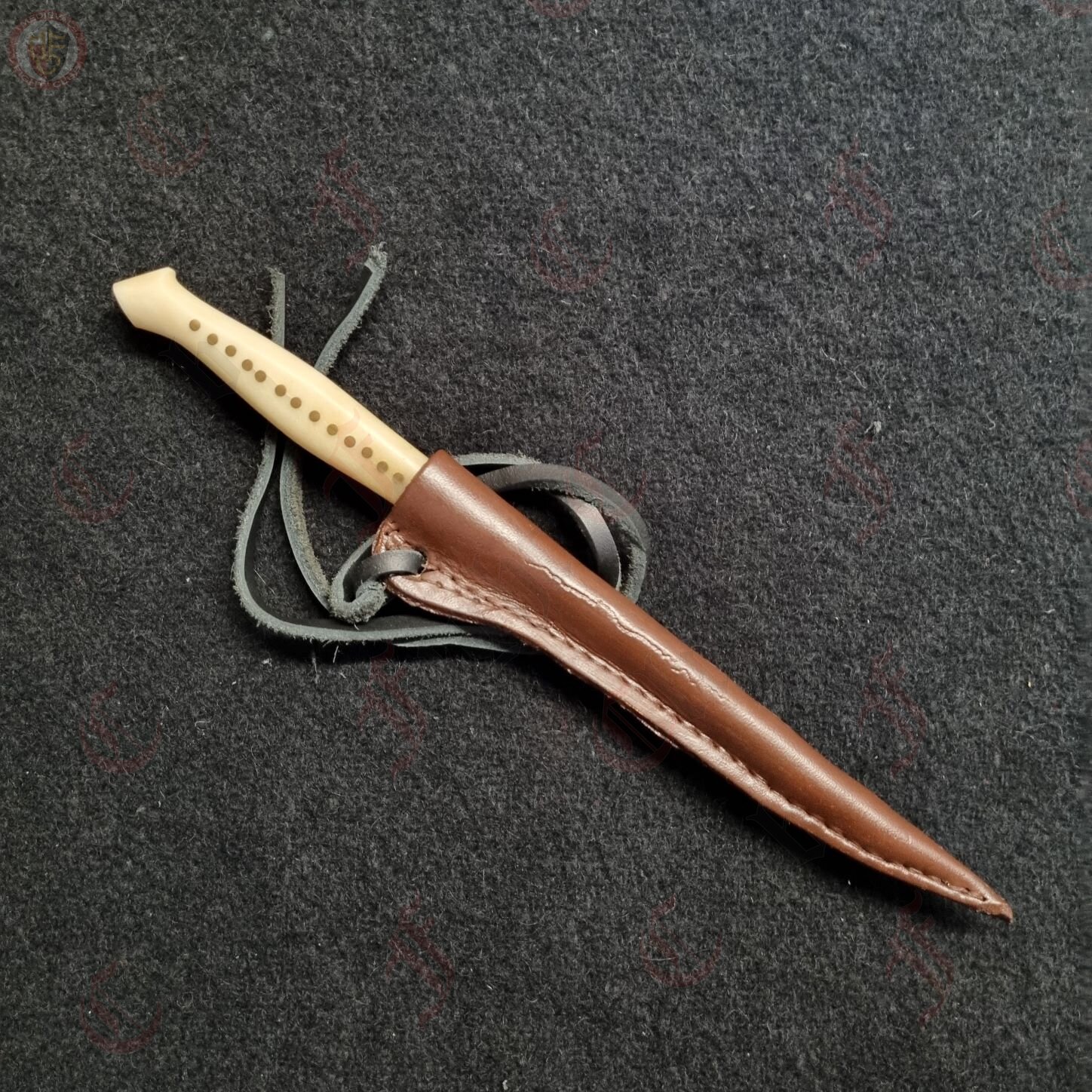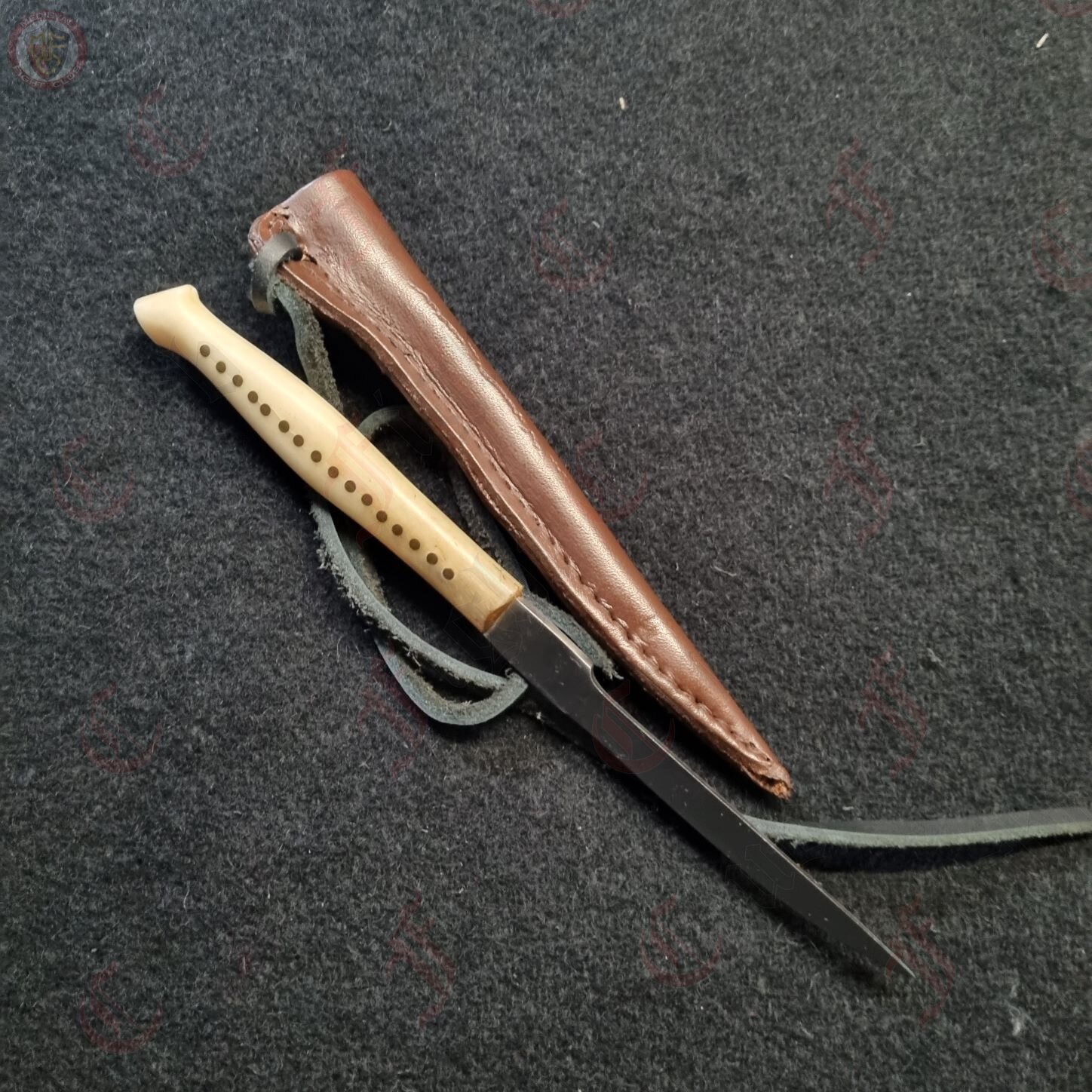 Eating knife with natural handle made of bone. Each knife comes with its own dark brown sheath. All are handmade so slight variations in size and shape can occur.