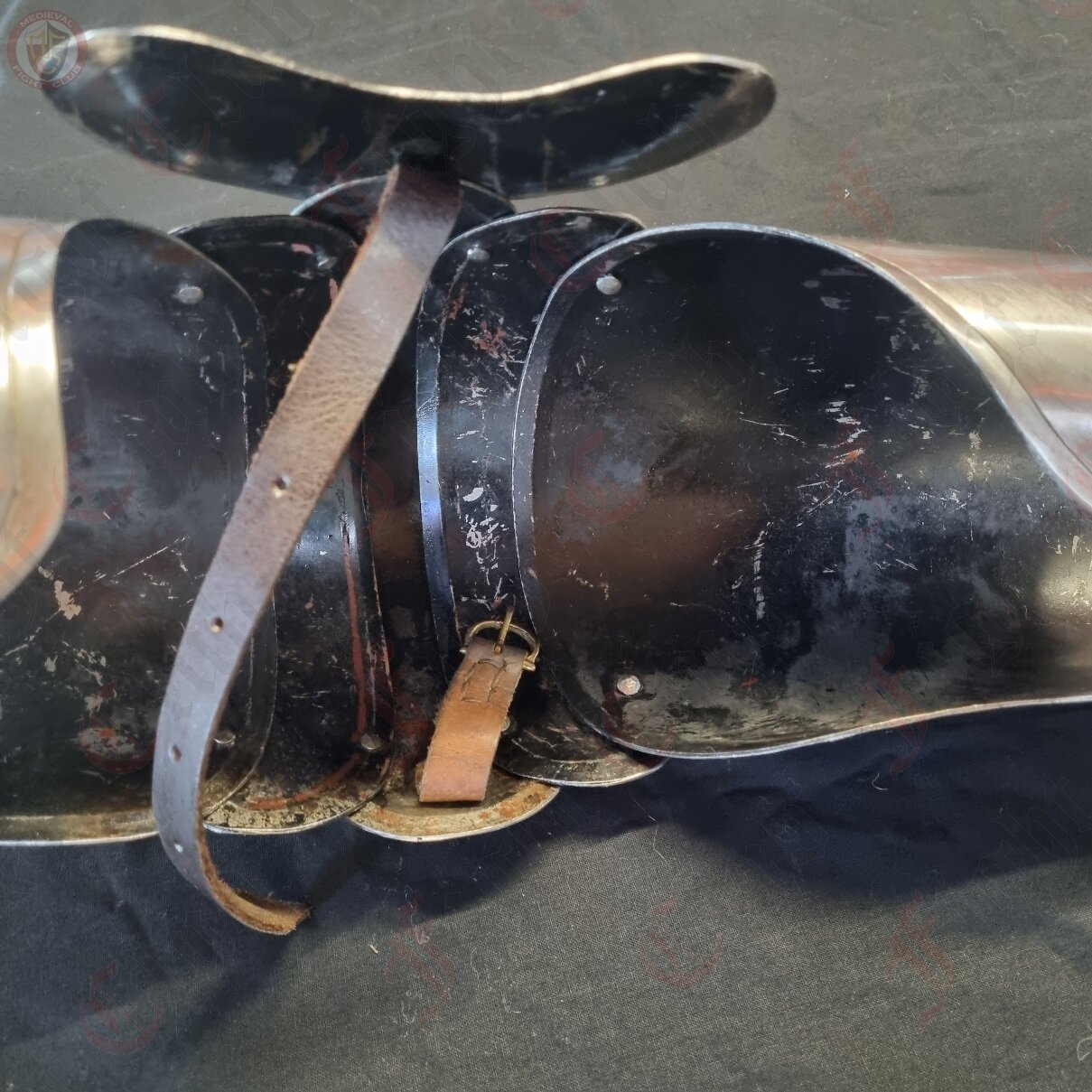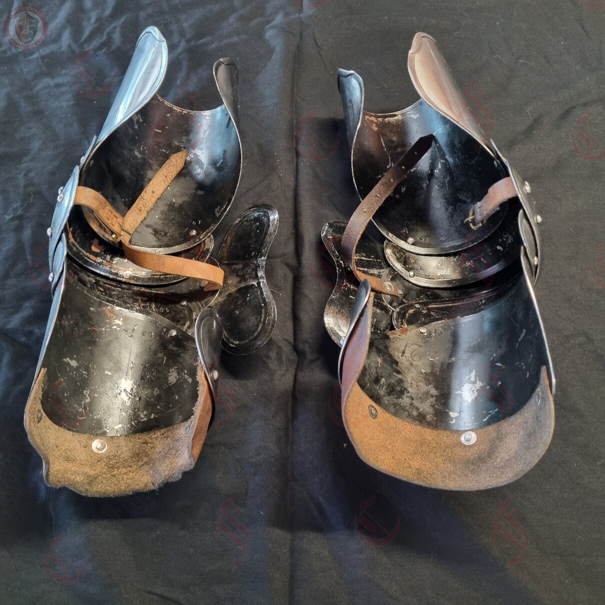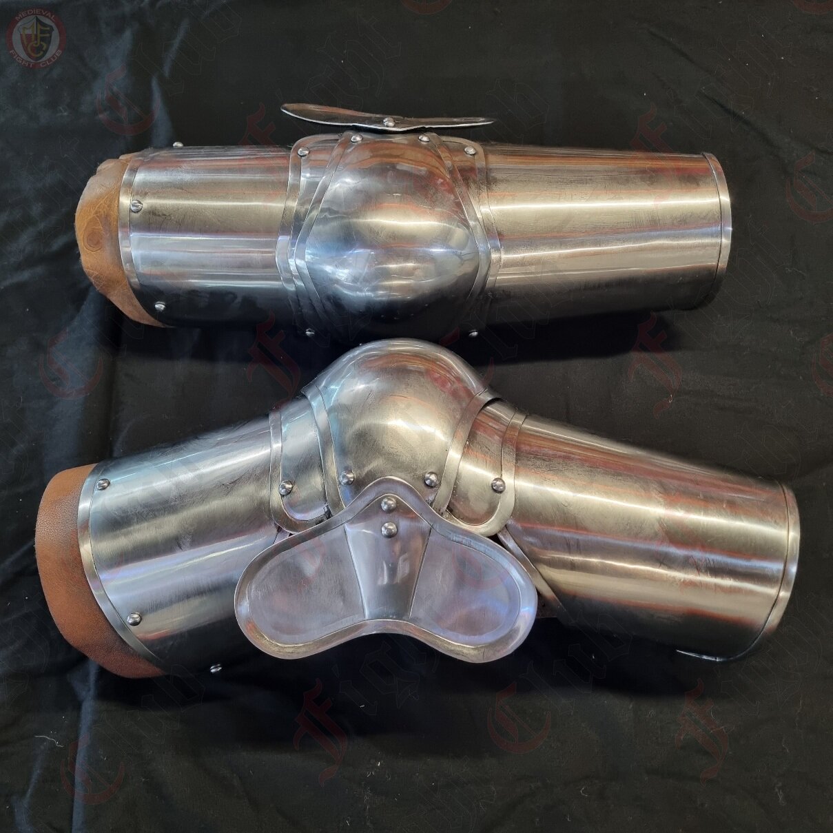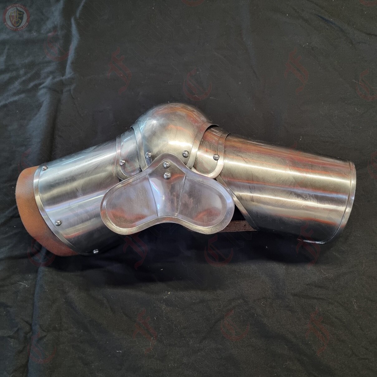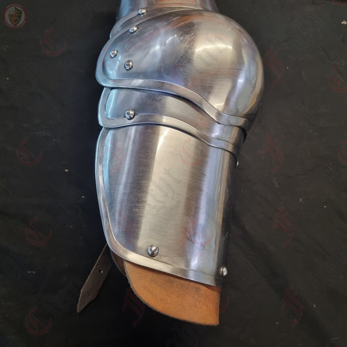 This pair of elbow guards come complete with vambrace and rearbrace that offers fantastic movement and arm protection for re-enactors. Made from 16 guage (1.5mm) steel. Now includes leather edging around the top of the shoulder. Perfect additional protection and gives somewhere to tie to the harness.