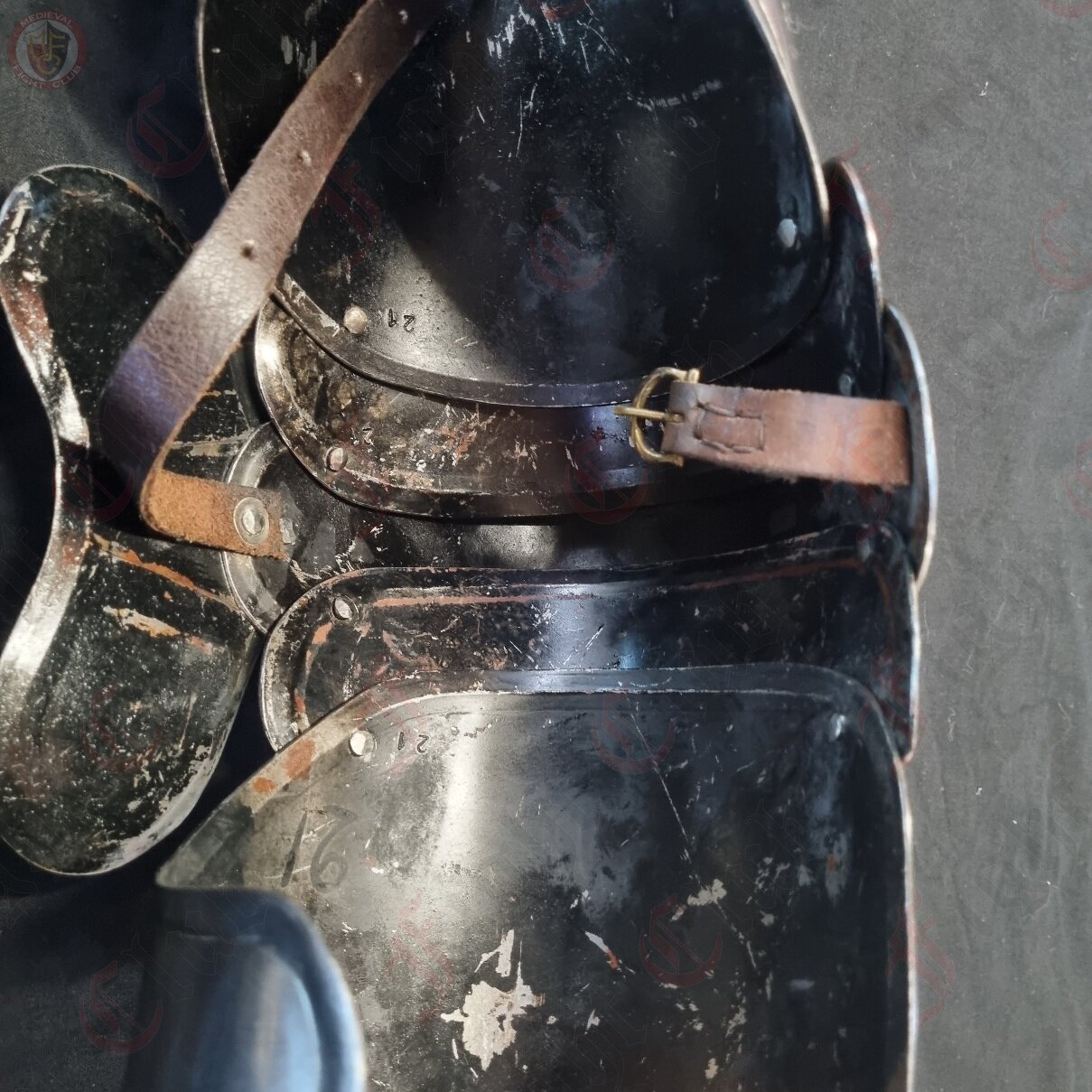 2. The re-enforced hole in the arming jacket, either reinforced with stitching or an additional piece of leather.
