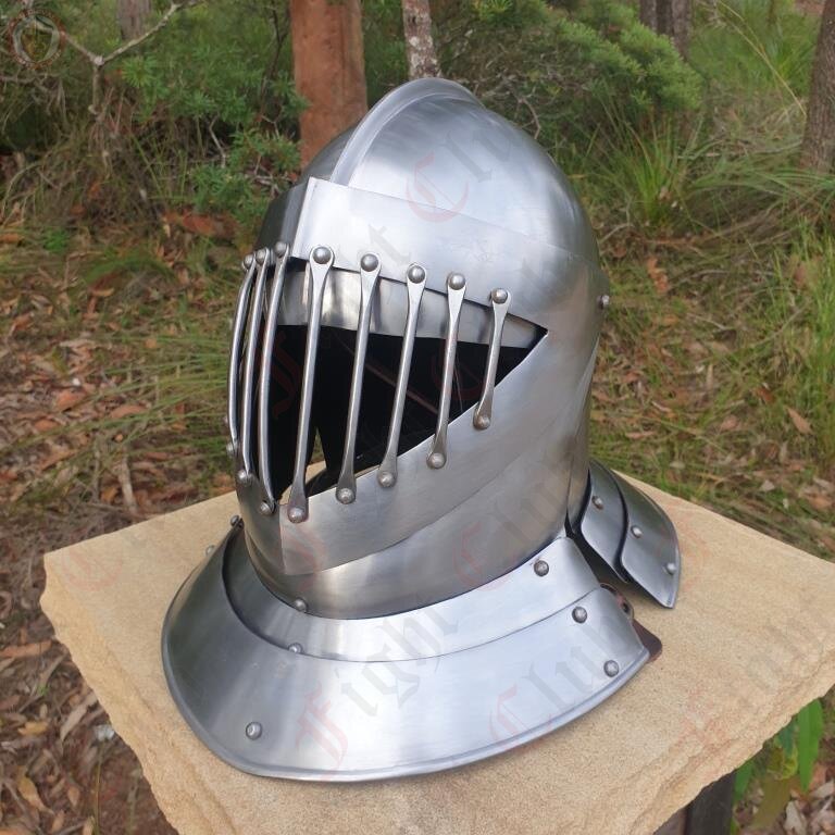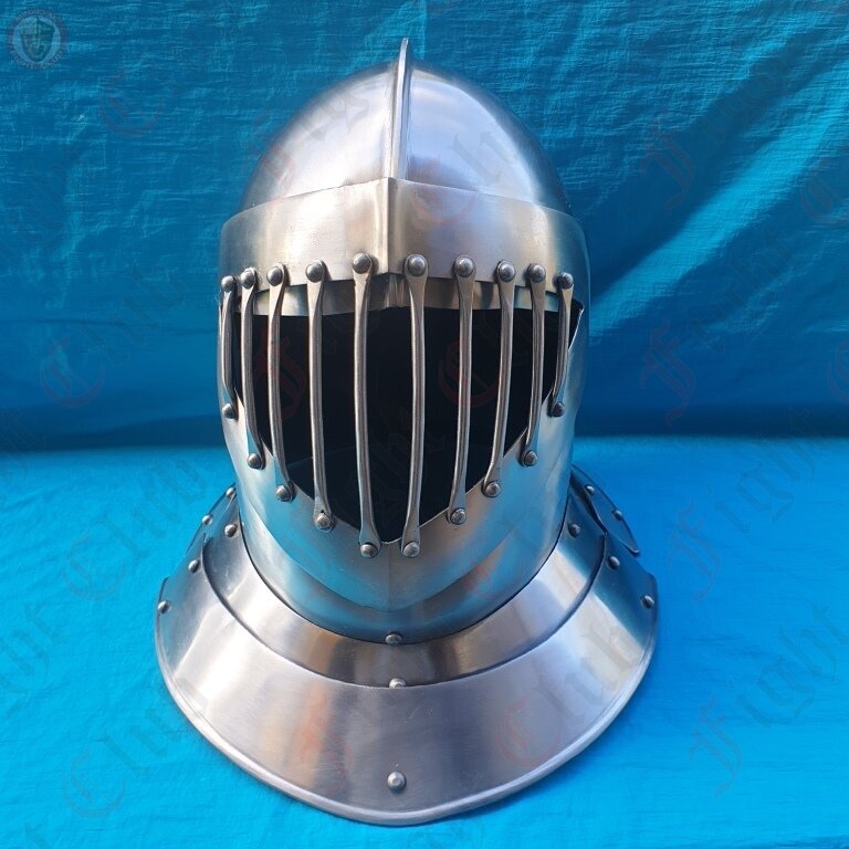 English Style Close Helm with Barred Visor - 14 Gauge