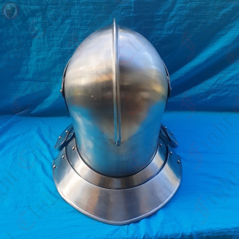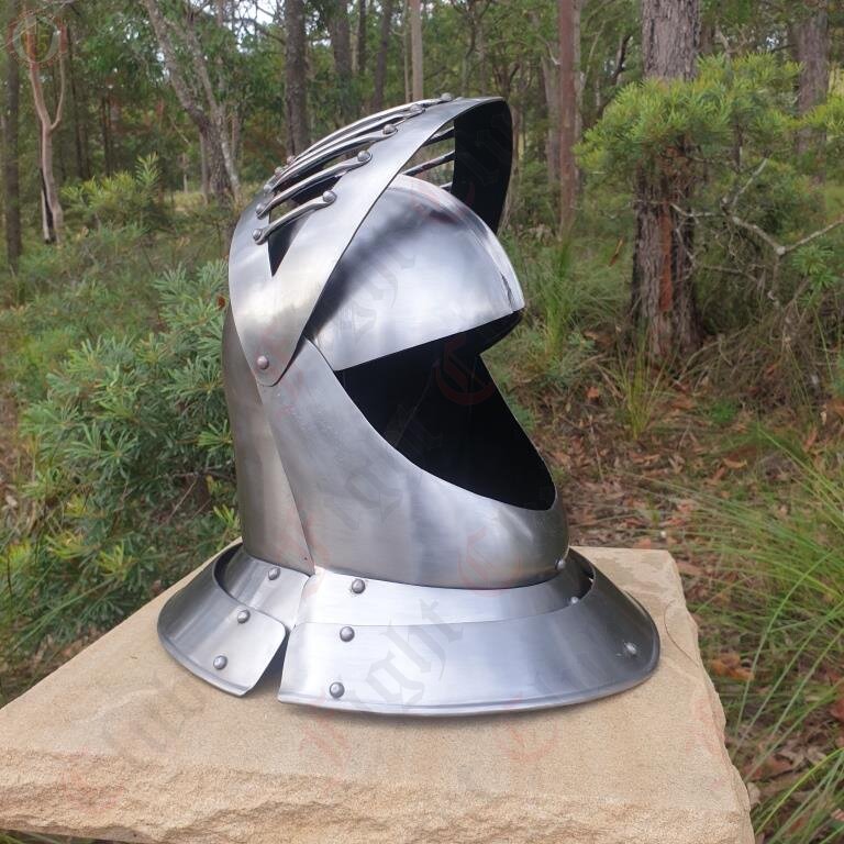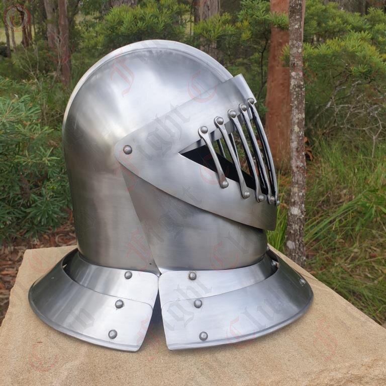 This close helmet is typical of the European knights who jousted during the Middle ages. This helmet is typical of the types in use in the late 15th century.