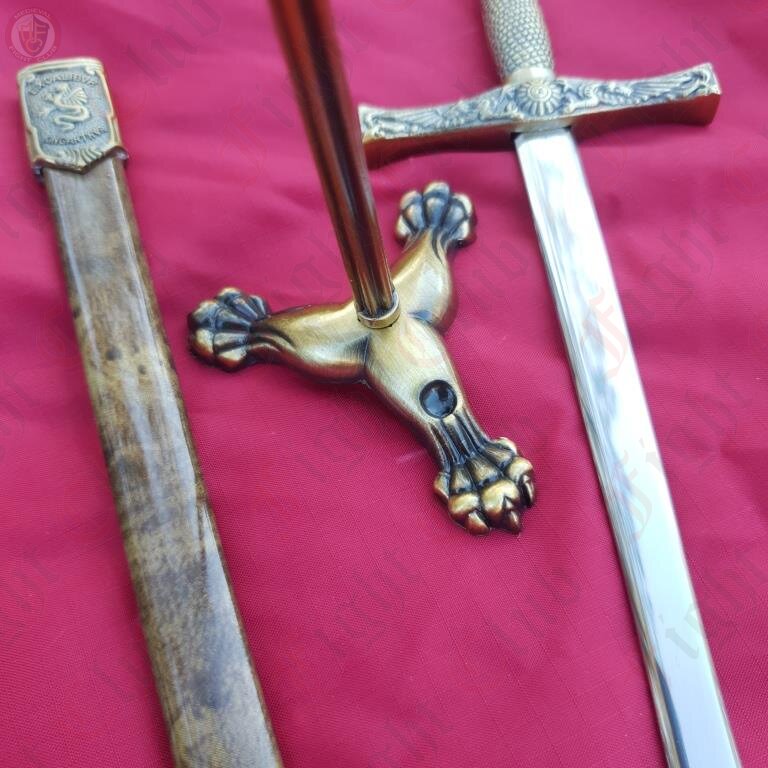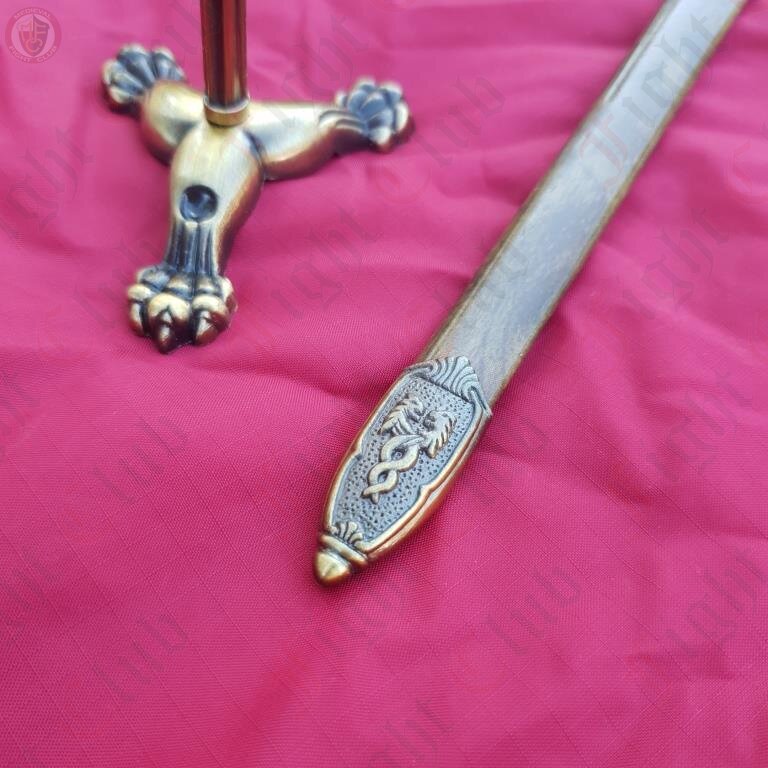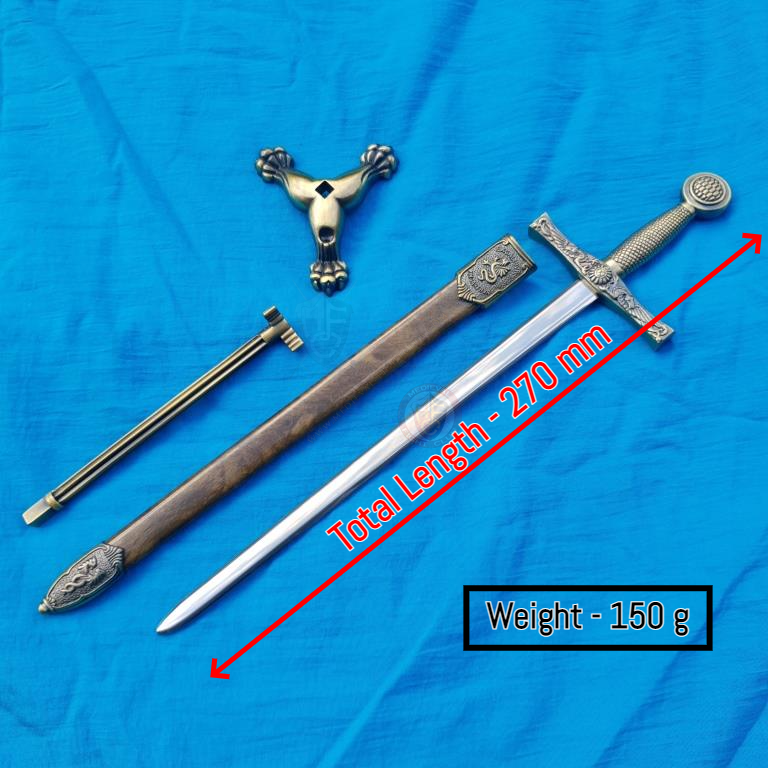 This ornamental steel Excalibur sword comes complete with its own miniature metal scabbard and metal stand. It can be used as a letter opener or simply as a display piece.