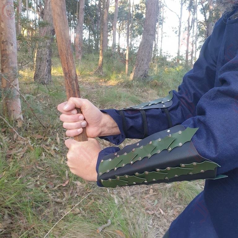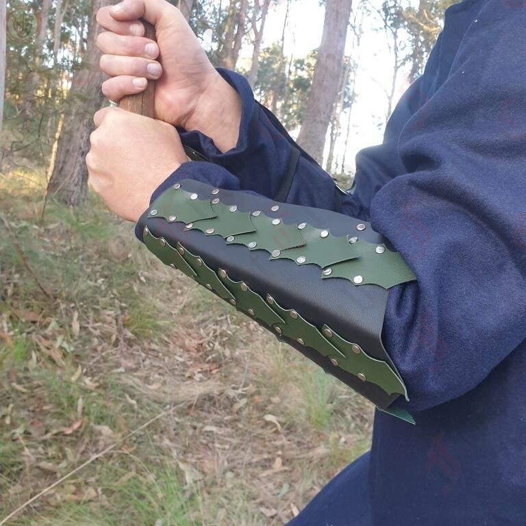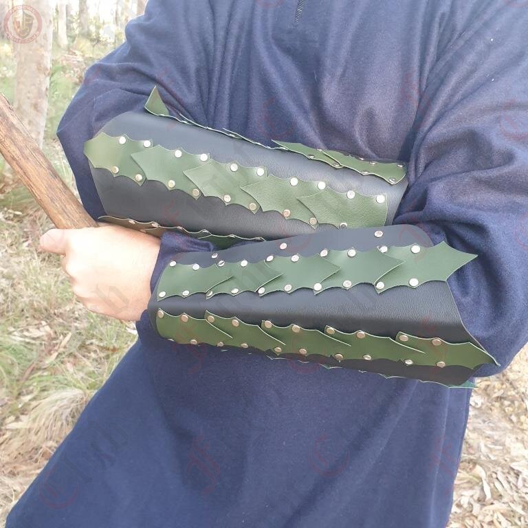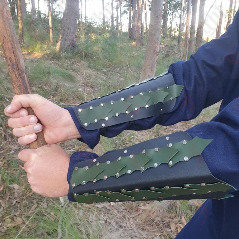 These guards do not have buckles. Each one is easily slipped on over your gambeson or costume.