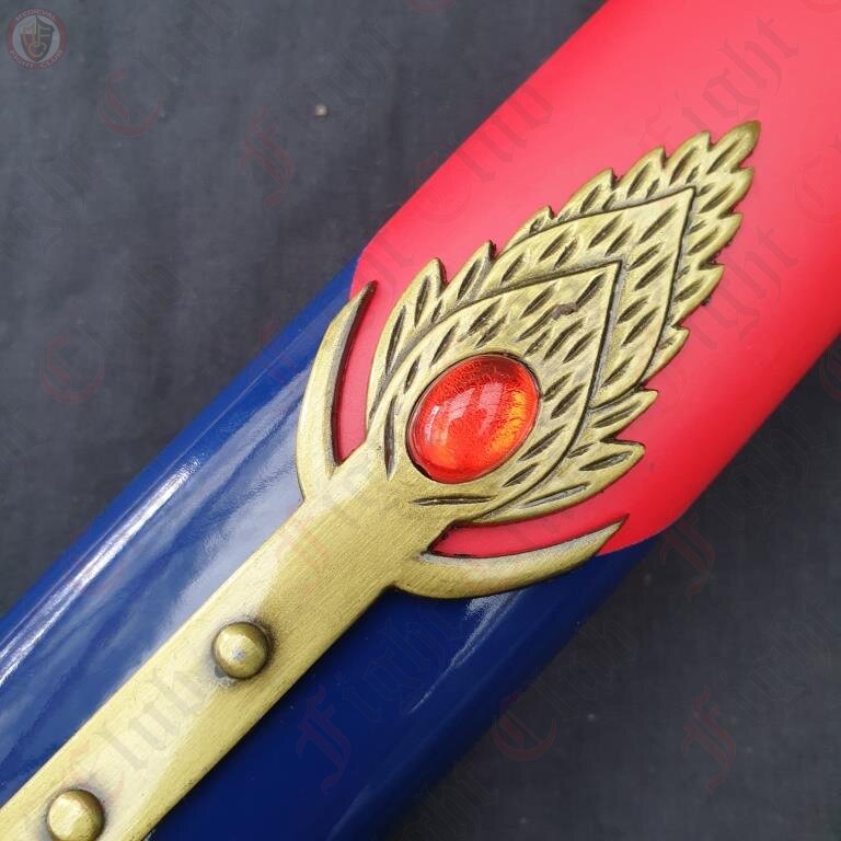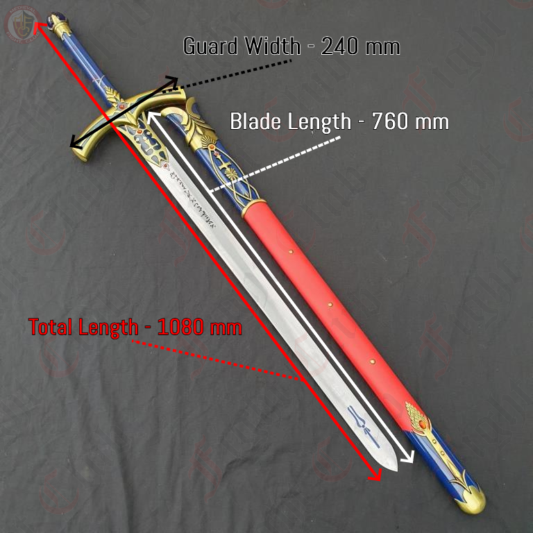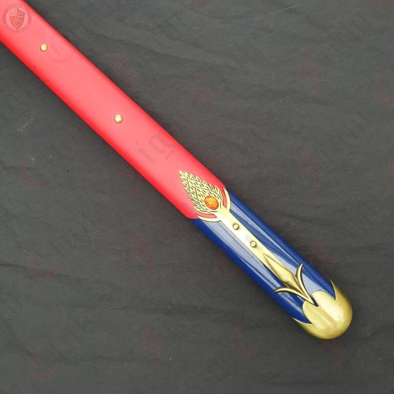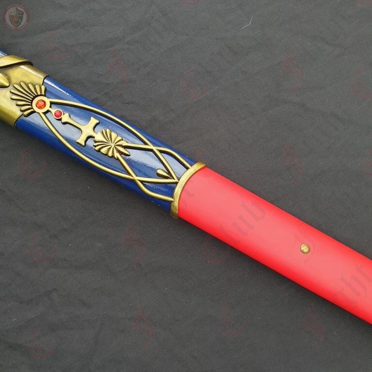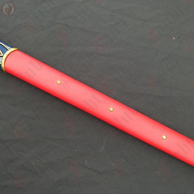 With a stainless steel blade, painted metal handle, and metal and red leather scabbard, the Caliburn sword is a a faithful physical recreation of the unique design seen in Fate.