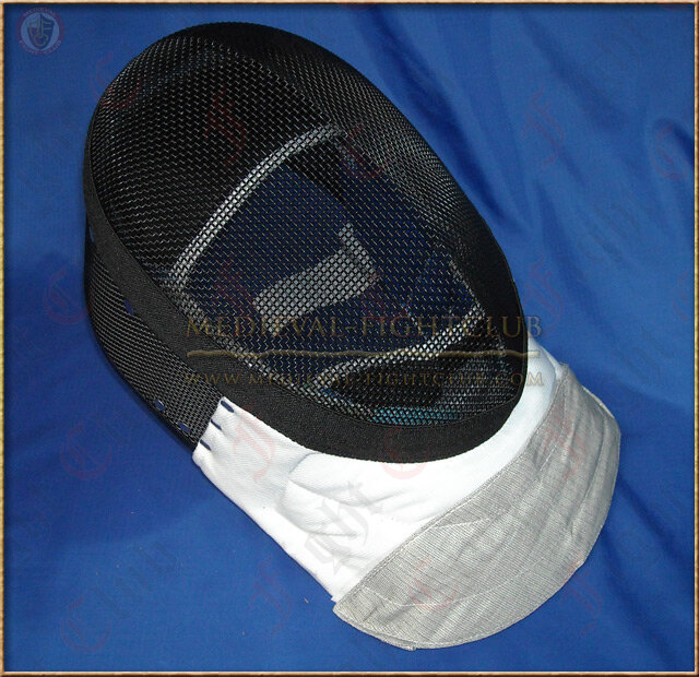 This mask can withstand 350 newtons of force, and it is therefore suitable for training in foil. It is can exceed the required 12kg punch test. Back of mask is adjustable with velcro on elastic and rear brace.