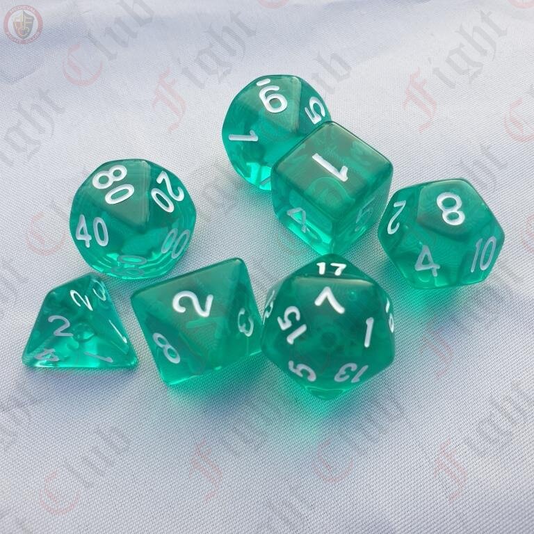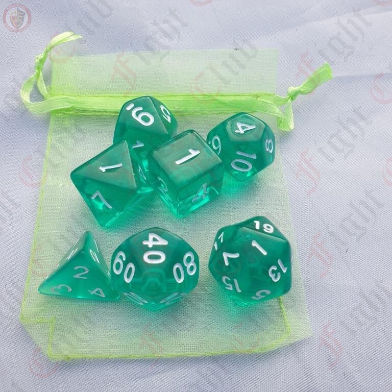 These dice are made of acrylic - easy to roll and hard to damage. They are a brilliant translucent green reminiscent of the gemstone emerald.