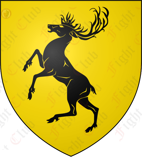 The Baratheon sigil is a crowned stag. They are the youngest of the great houses, born during the Wars of Conquest upon the defeat of Argiliac the Arrogant.