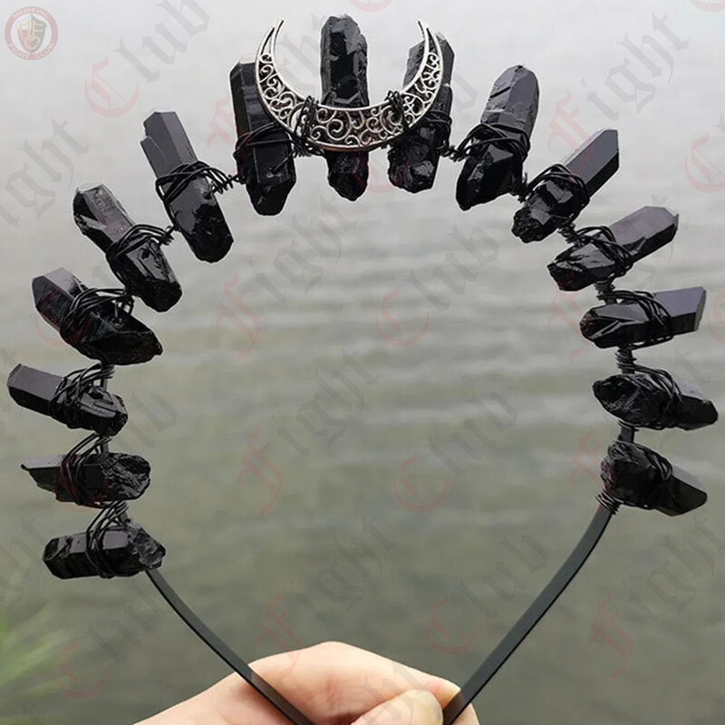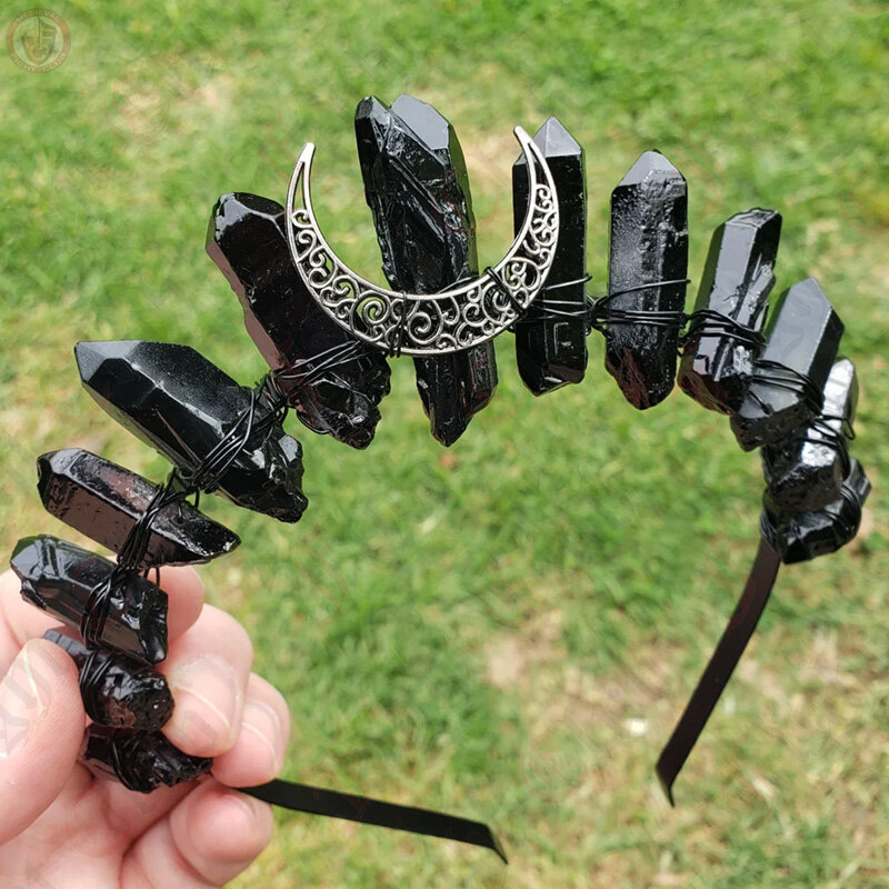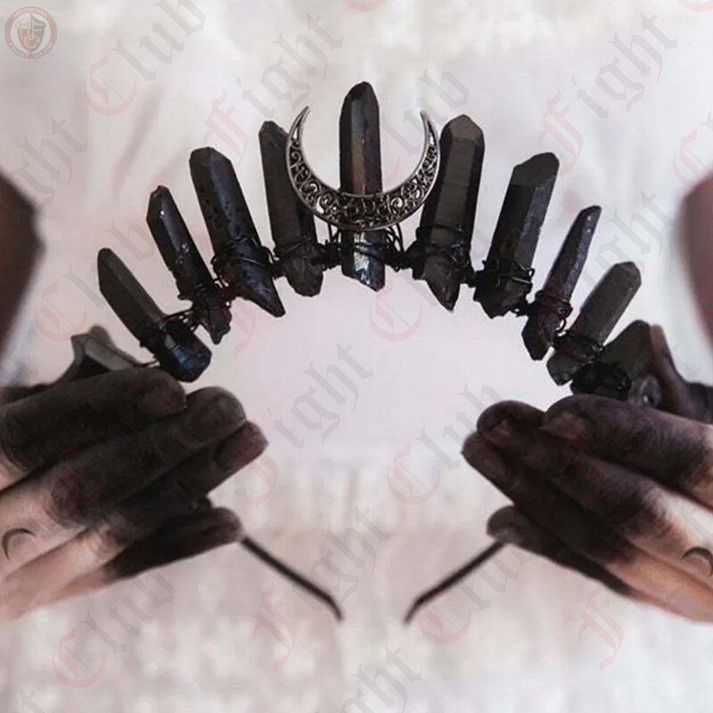 Behold the mystique of an all-black tiara, crowned with a celestial touch—the crescent moon in metal (luna) and the enchanting depth of black quartz. A symbol of lunar elegance, this darkly exquisite accessory is tailor-made for the sovereign allure of every dark princess or queen.