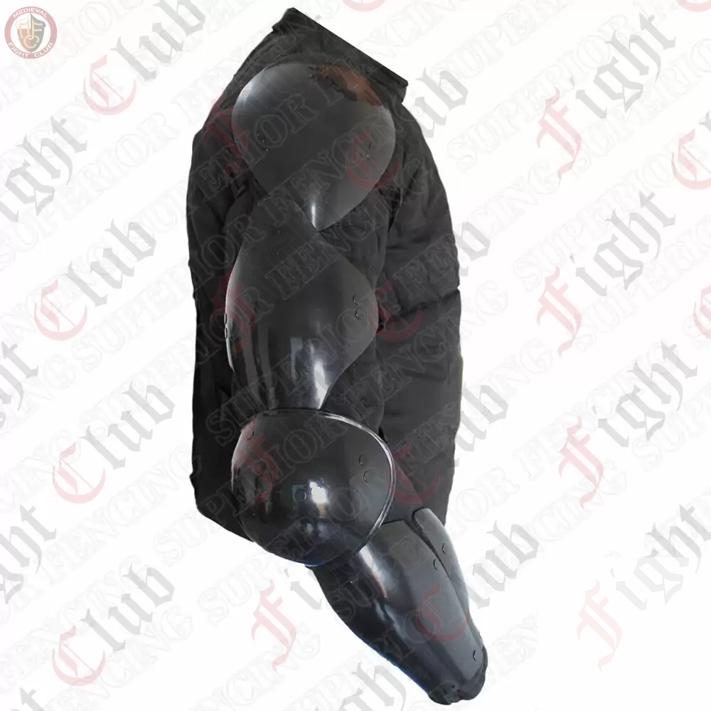 Consisting of 4 plates that cover the entire arm, this harness emulates the pauldron, rerebrace, cop and vambrace of traditional plate armour, but with lightweight yet highly durable polyethylene. All pieces are fastened via velcro straps, allowing them to be worn with or without a gambeson underneath.