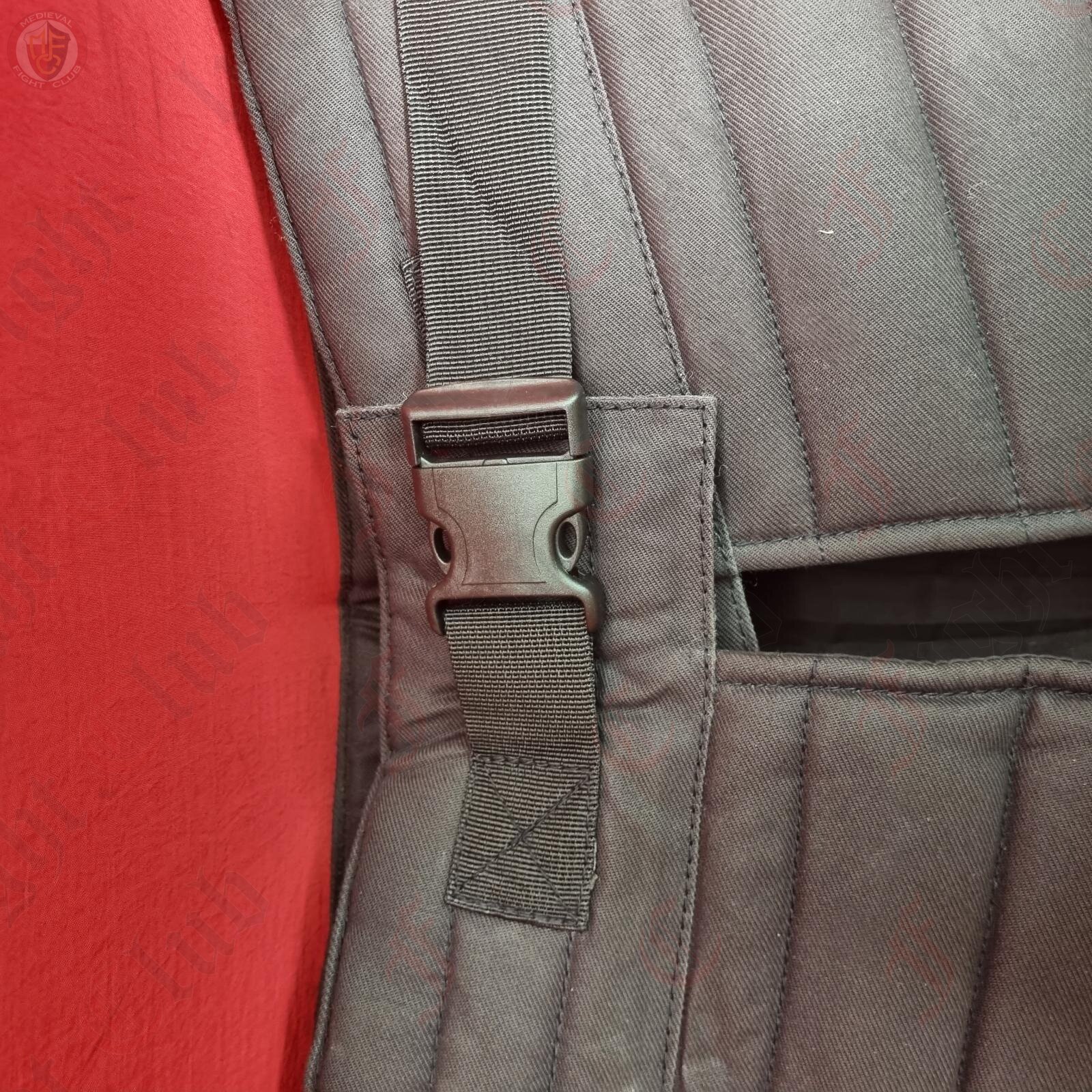 Tough padded skirt for protecting your upper thighs and groin. The skirt is made from a synthetic woven fibre, stuffed with thick padding, and stress tested to withstand 350 N of force.