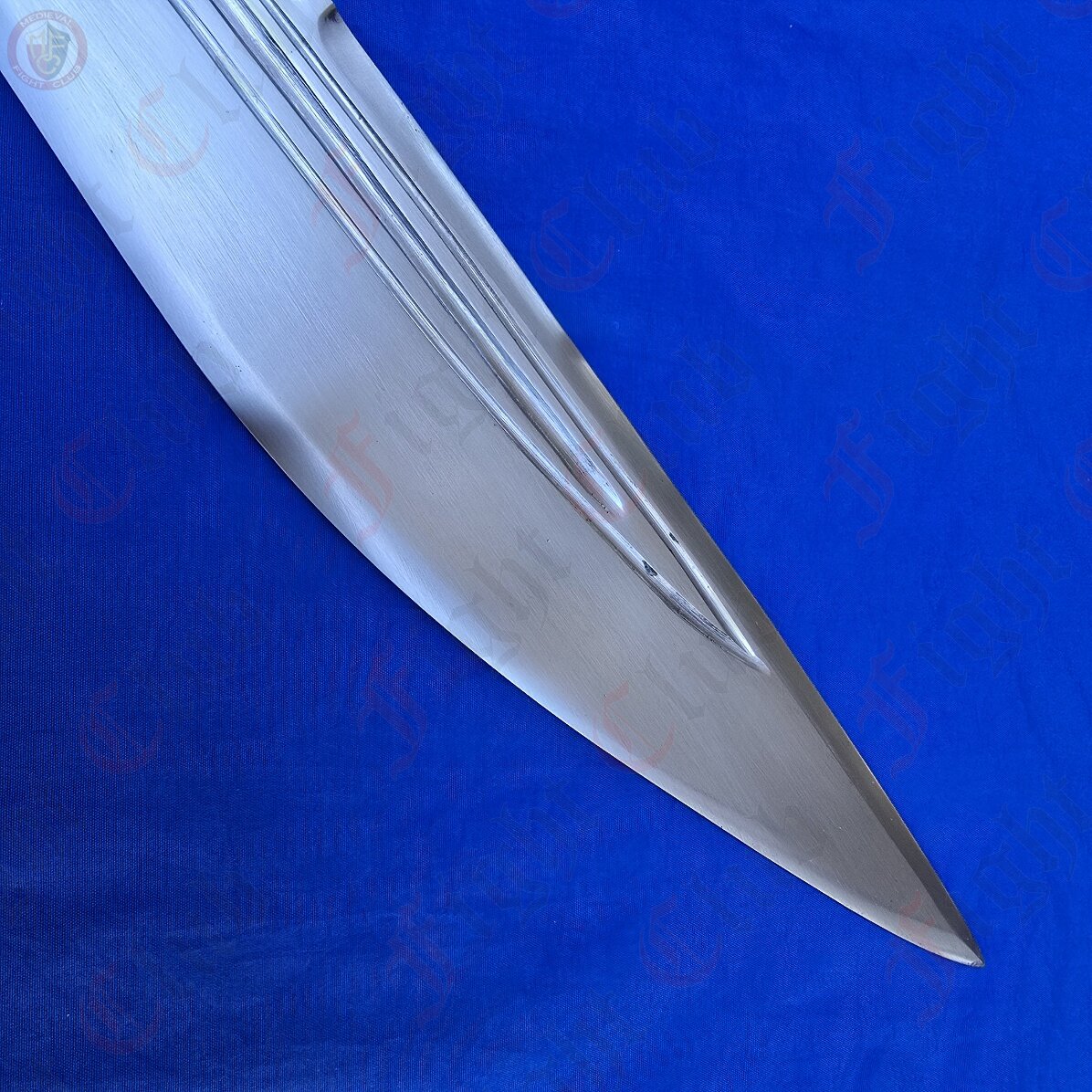 The blades are both high carbon steel, perfect for re-enactment. For combat, rounding of the edge and tip may be required