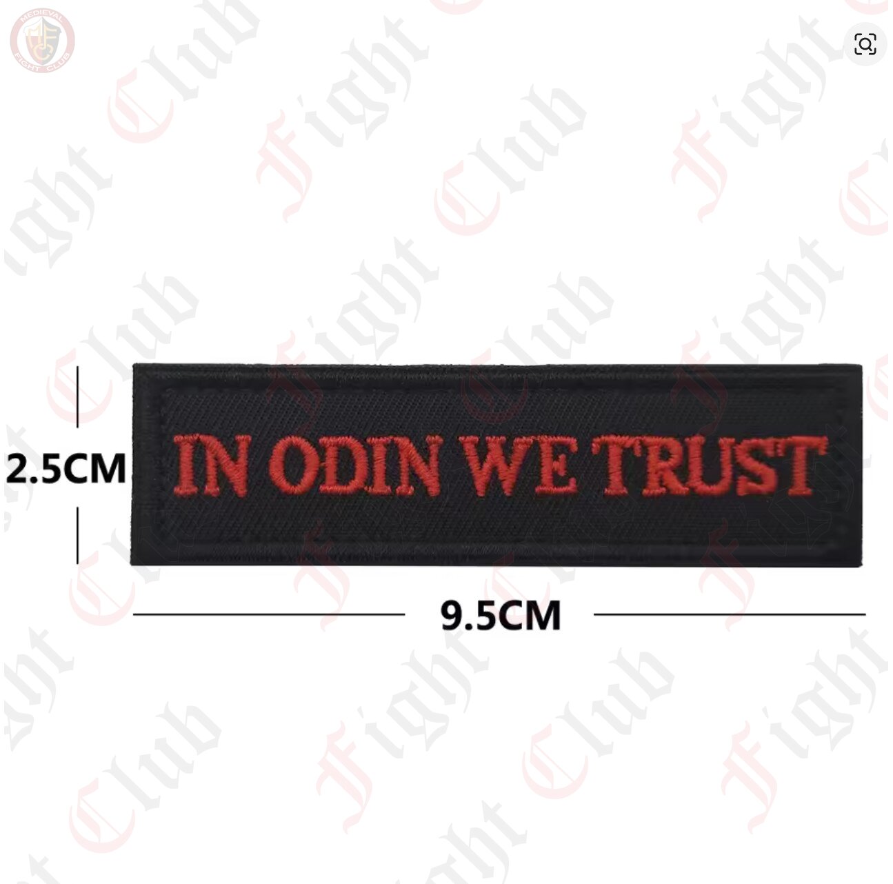 A viking cloth patch. The patch reads IN ODIN WE TRUST