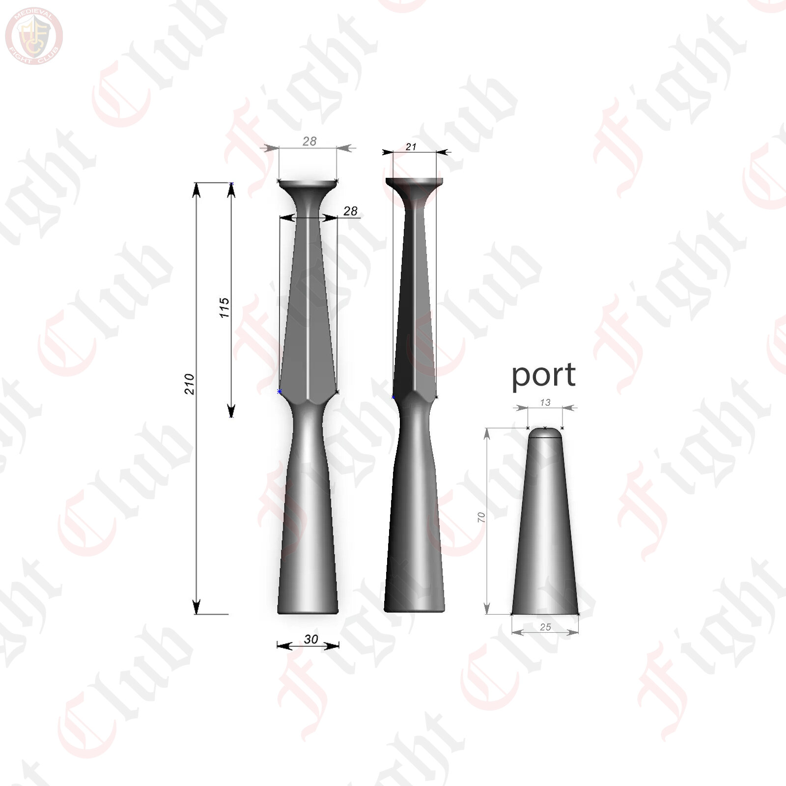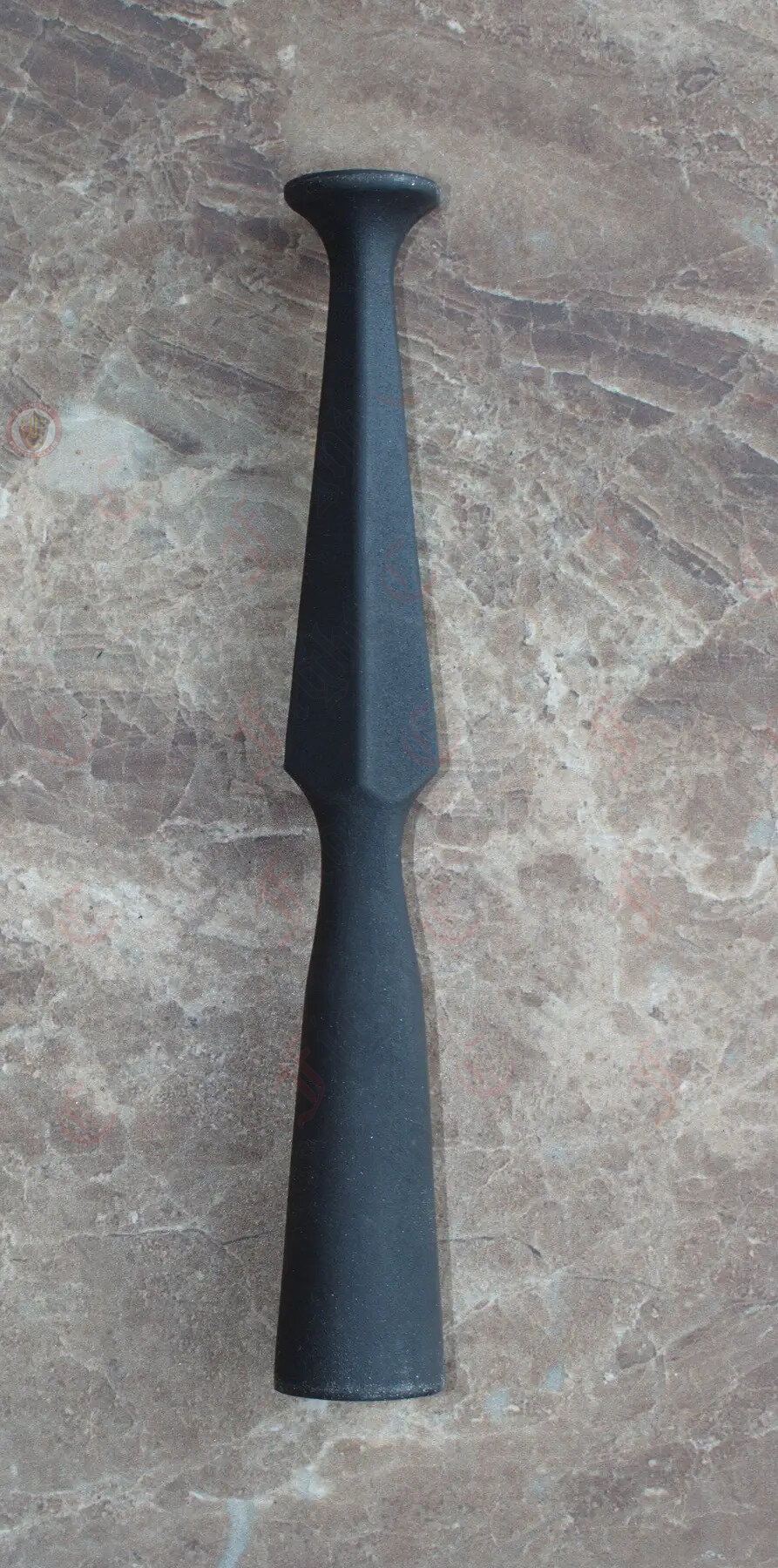 This spearhead is small and suitable for use with a javelin or single-handed spear. Short and compact, the lightweight spear head allows for quick thrusts and manoeuvres.
