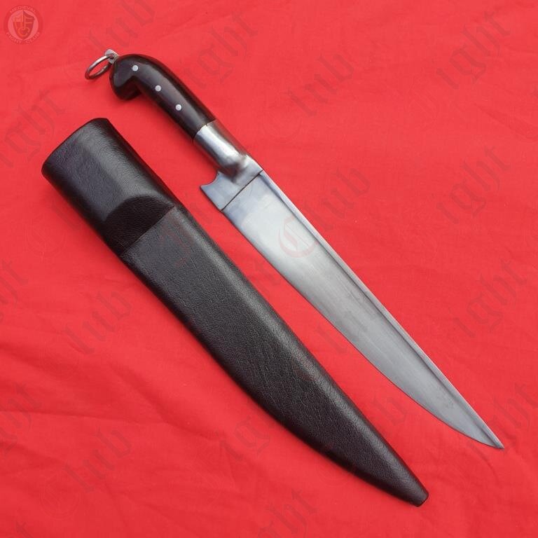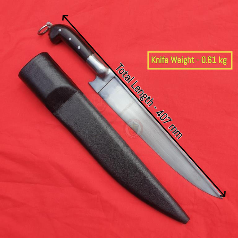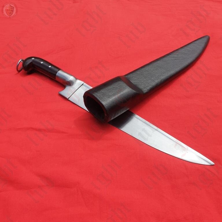 The Kyber Knife, or Peshkabz, is a blade of Indo-Persian origin that saw wide use across India and Central Asia during the Mughal Period. Designed as a thrusting weapon for penetrating mail armour: the long, sleek blade and reinforced tip are perfect for slipping into individual links of maille and splitting them apart, allowing for the rest of the blade to penetrate through the armour.