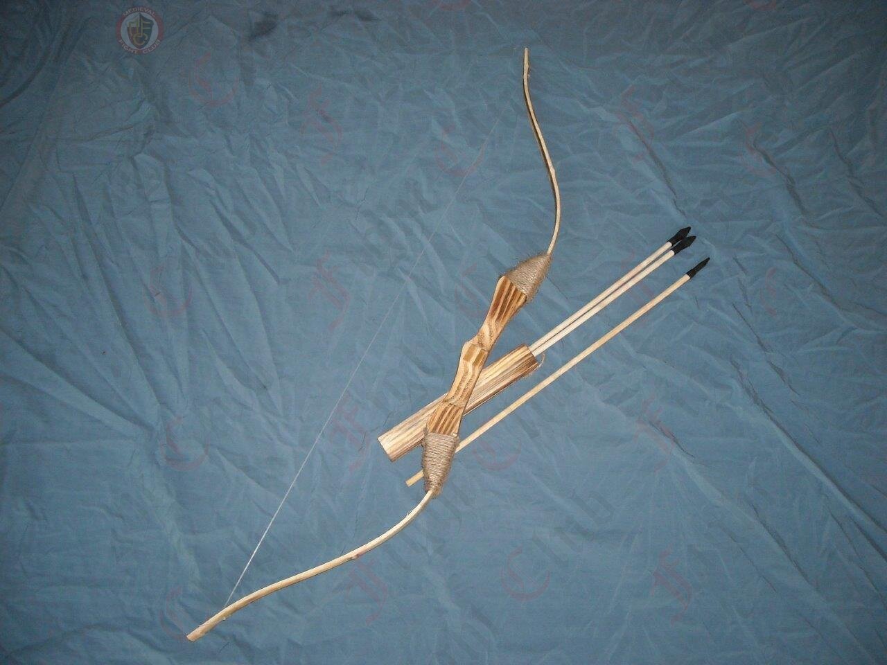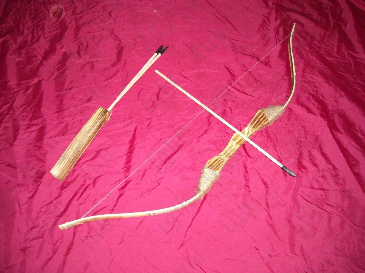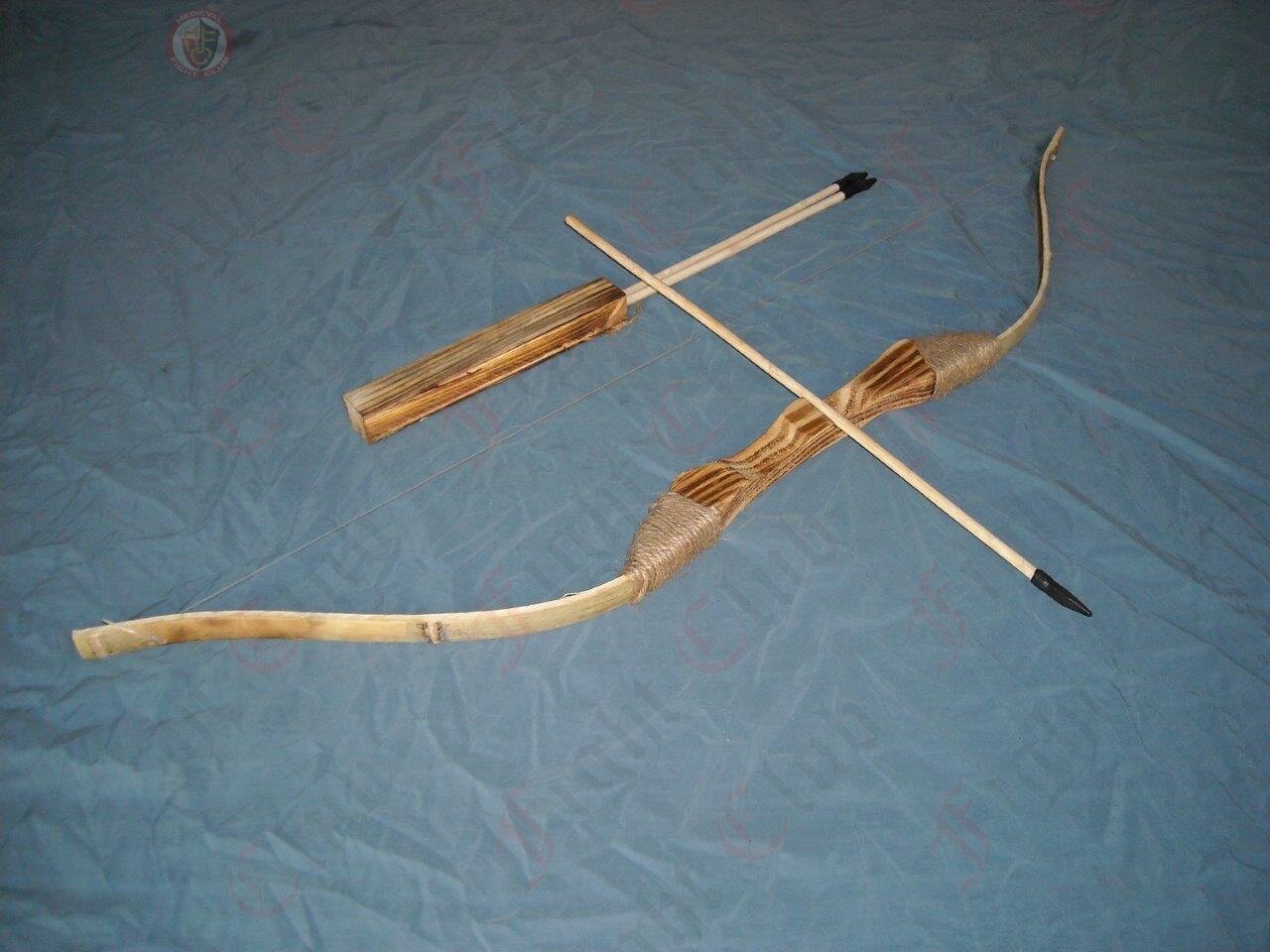 Wooden/Bamboo bow and arrow archery set. This is a great bow and will easily fire the arrow projectiles over 25m.