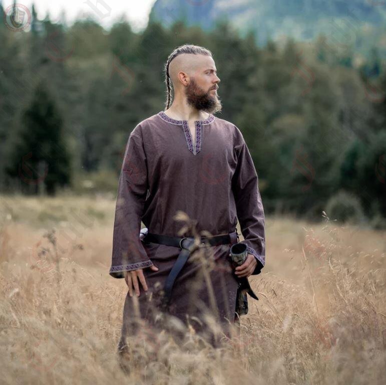 Indulge in the comfort of this medieval tunic, expertly crafted from cotton. Its knee-length cut and strategically placed side slits provide exceptional freedom of movement, making it the ideal choice for LARP events, medieval markets, or your upcoming re-enactment adventure.