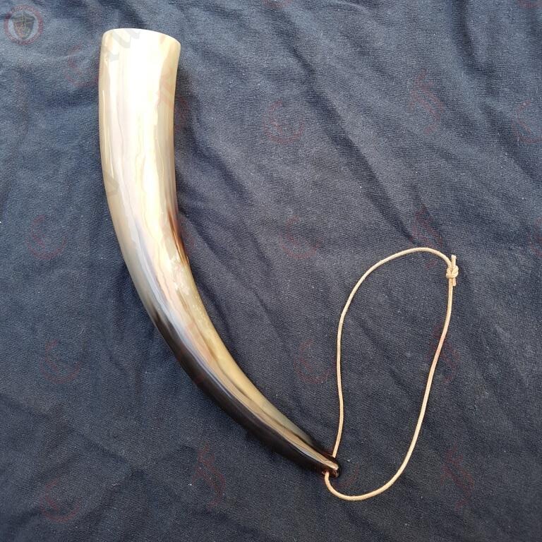 A very large drinking horn with a thin leather thong to slip around your wrist or attach to your belt.